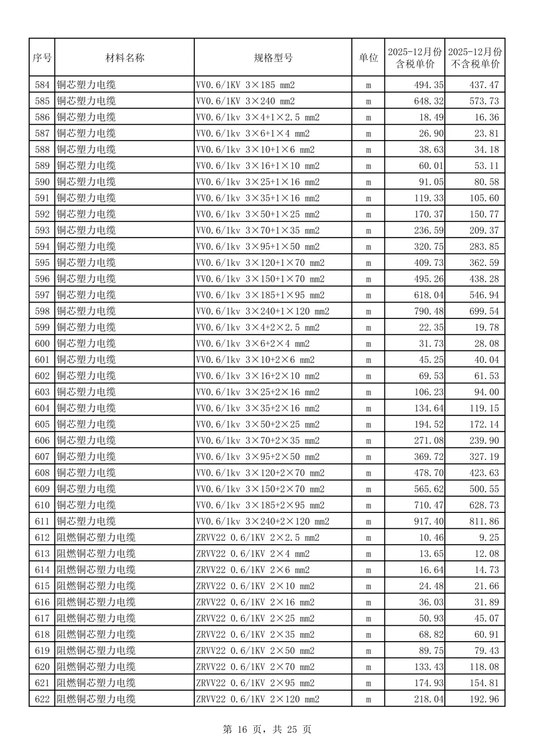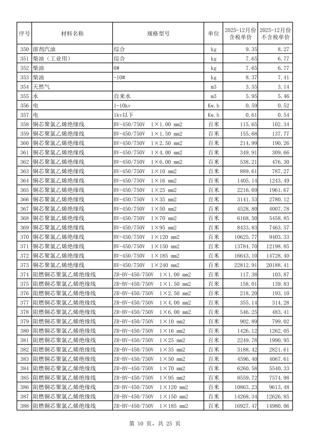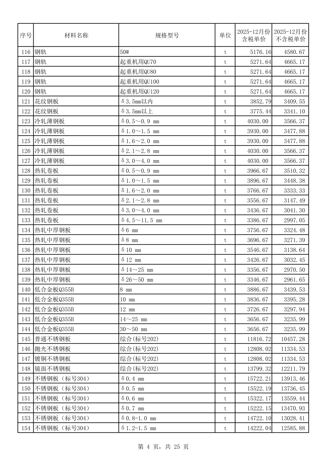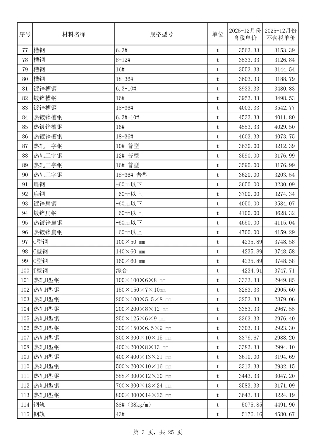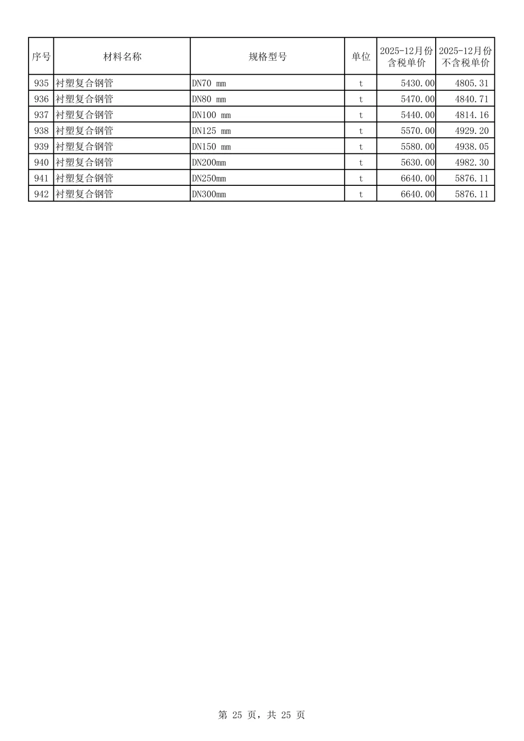 附件:2025年12月份郑州市建设工程主要材料价格信息