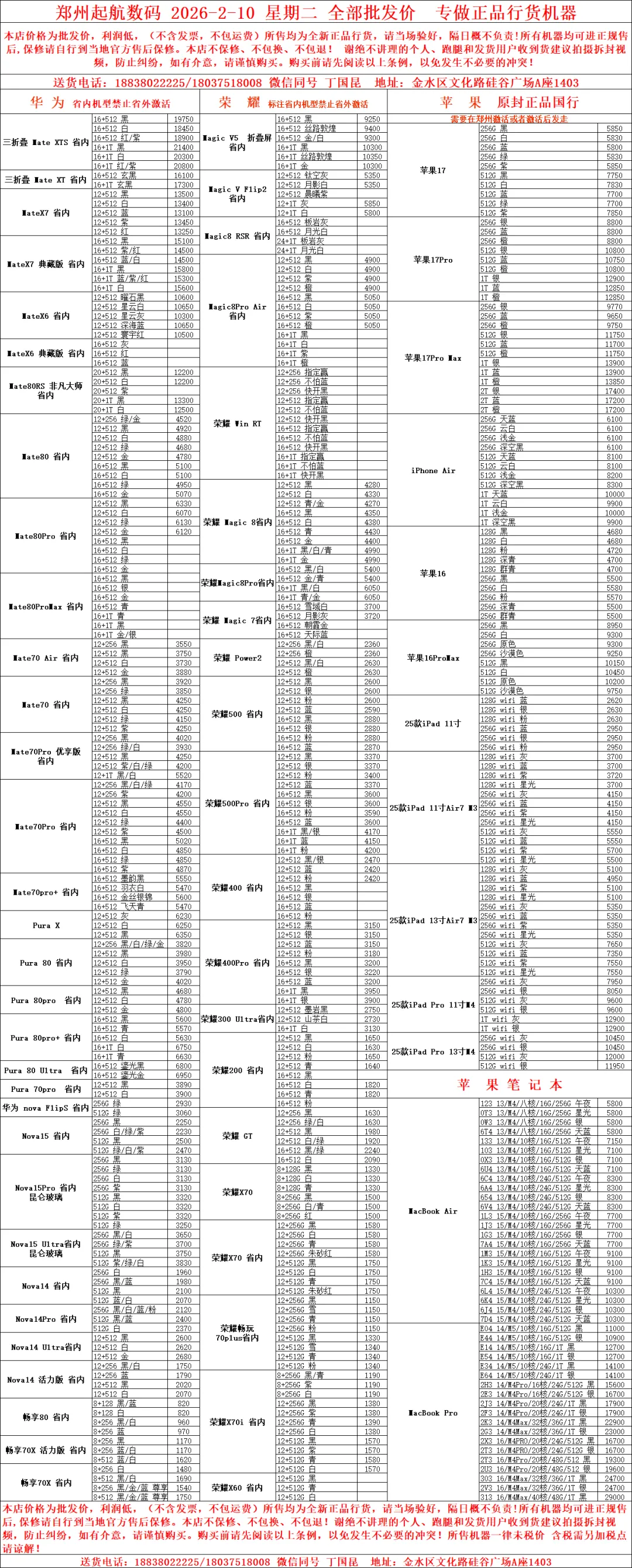 每天手机最新行情 请关注微信每日推送微信公众号:郑州起航数码公司地址:郑州市金水区文化路82号硅谷广场A座1403