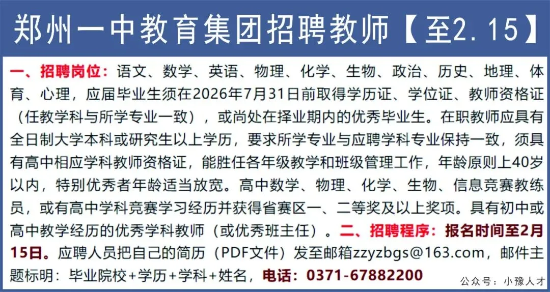 >郑州一中教育集团招聘教师【至2.15】
