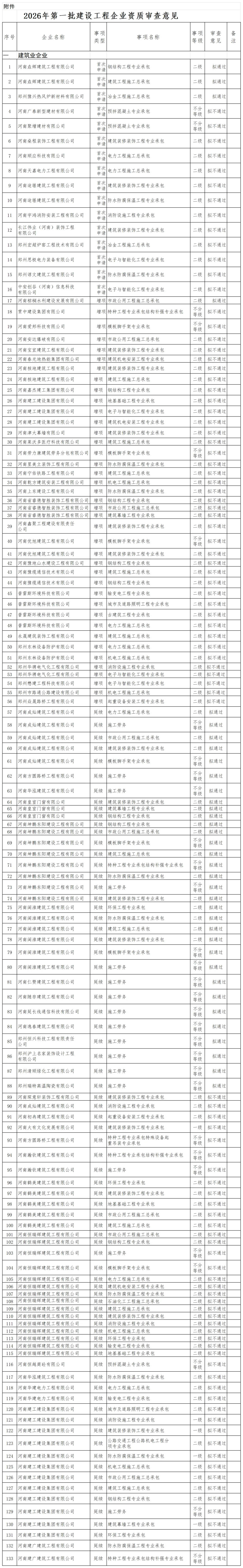 按照《行政许可法》及有关建设工程企业资质管理规定,我局对申请2026年第一批建设工程企业资质的申报材料组织了专家审查,现将审查意见予以公示。公示期为5个工作日(2026年2月10日至2026年2月14日)。