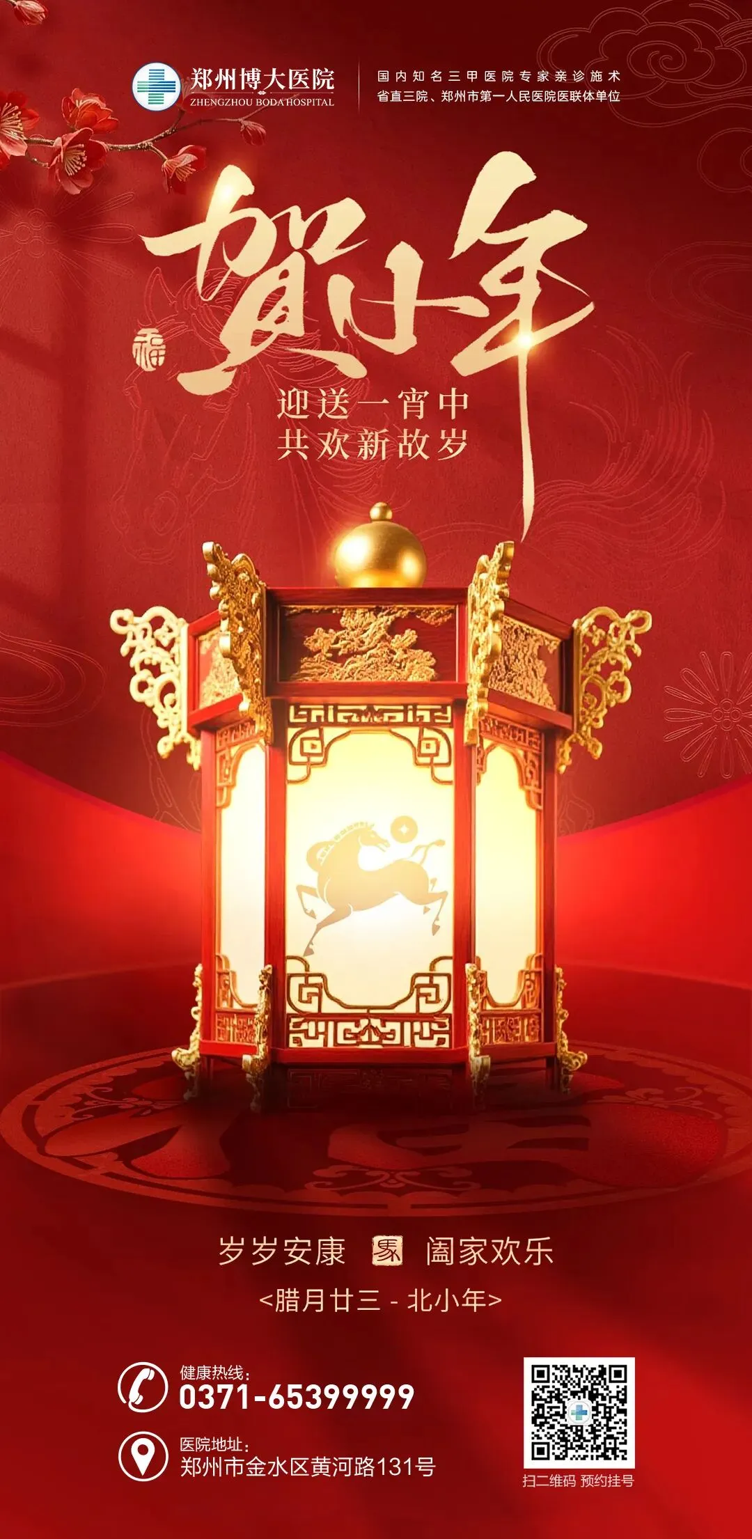 岁序更替,华章日新。值此小年佳节来临之际,郑州博大泌尿外科医院谨向社会各界朋友,以及广大患者及家属,致以最诚挚的节日问候与美好祝福。