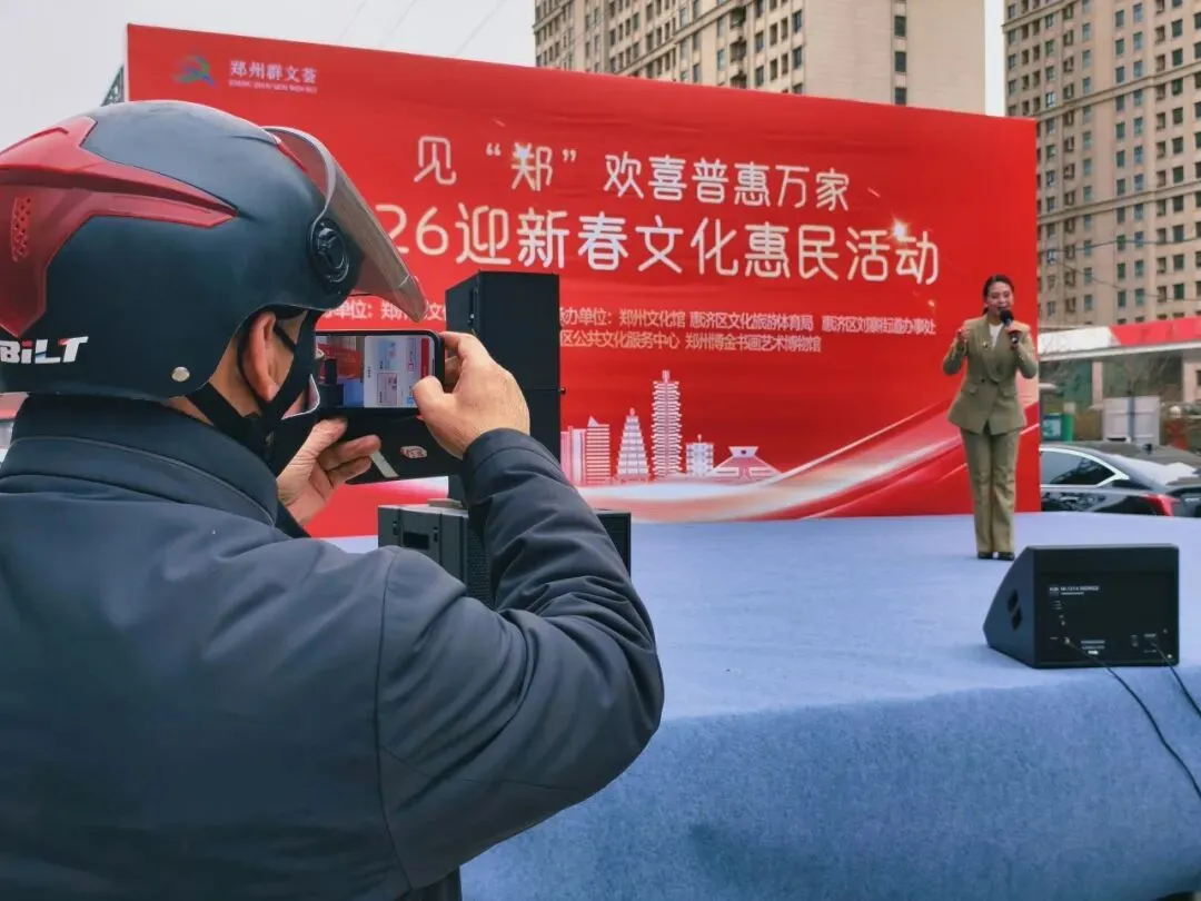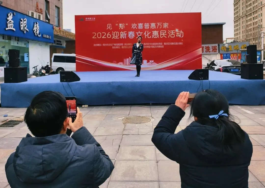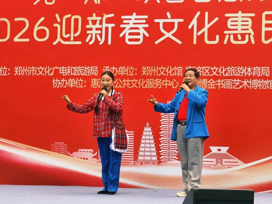 2026年2月6日下午,农历腊月十九,在马年新春即将来临之际,一场名为“见‘郑’欢喜普惠万家”的迎新春文化惠民演出在惠济区博金眼镜城广场热闹开演。本次活动由郑州市文化广电和旅游局主办,郑州文化馆、惠济区文化旅游体育局承办,旨在通过丰富多彩的文艺活动,为郑州群众送去新春祝福。