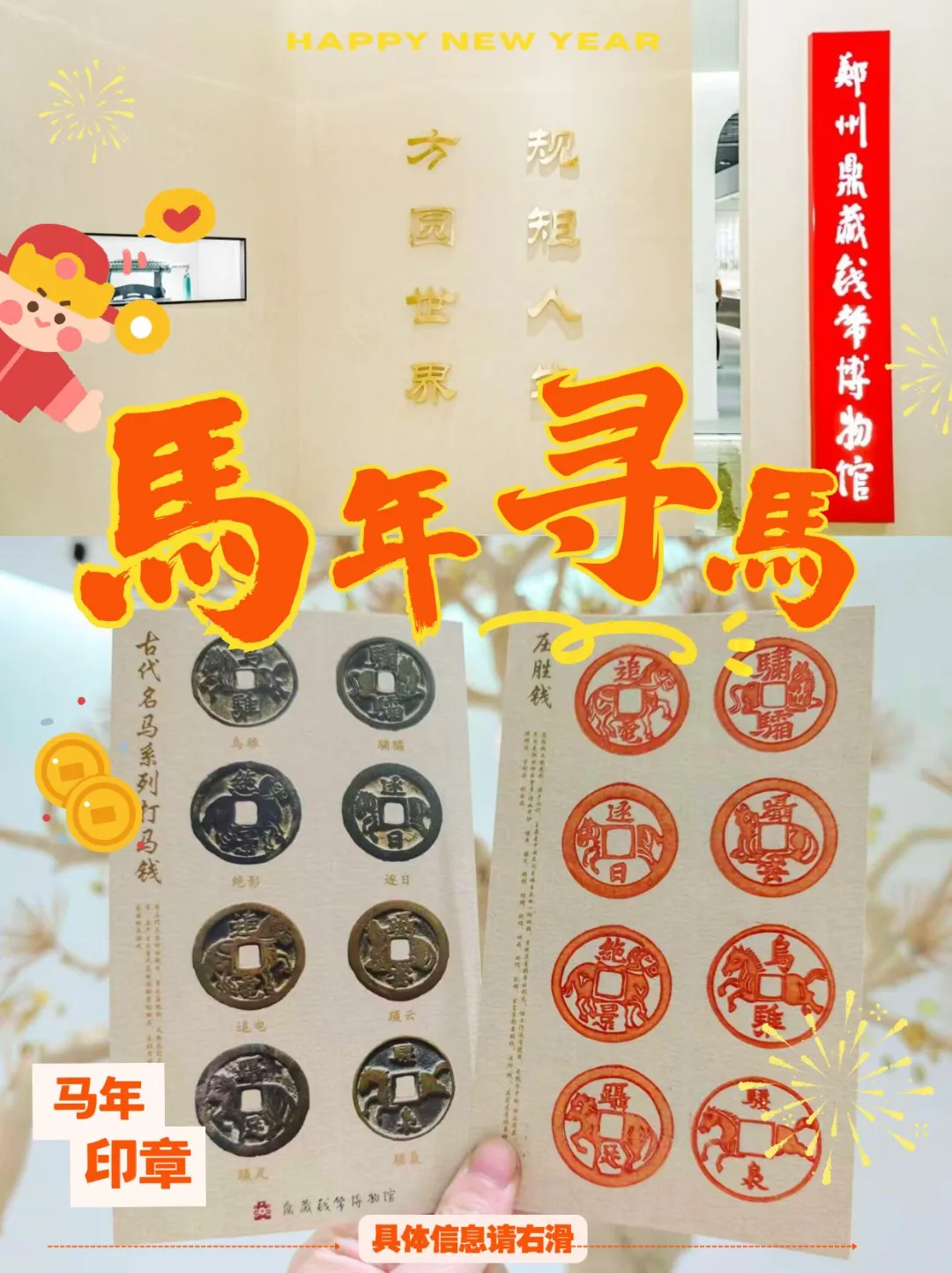 在博物馆展区,睁大眼睛寻找与马相关的钱币,找到后找工作人员领取马年集章卡!卡片上能亲手加盖8枚古代打马钱印章,每一枚都藏着古钱币的精致纹路,是独属于马年的文化纪念,盖满章的瞬间成就感拉满。如果你能在馆内找到五枚与马相关的钱币文物,即可参与抽奖活动,超多精美礼品等你来拿!