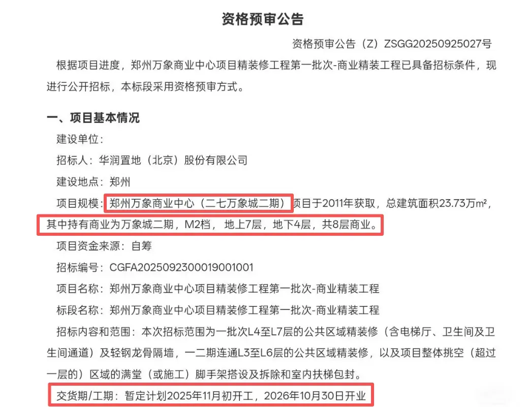 比如二七万象城二期,据了解,这一项目定位为M2档,与万象城一期会无缝衔接。项目已于2025年开工,预计将于2026年十一前后开业。