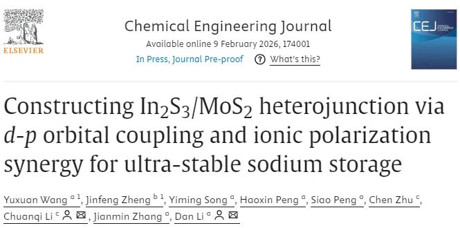 钠离子电池作为锂离子电池的重要替代技术,近年来受到广泛关注。钠元素储量丰富、分布广泛且成本低廉,使其在大规模储能领域具有显著优势。然而,钠离子半径较大、质量较重,导致其在电极材料中的嵌入/脱出动力学缓慢,且容易引起宿主材料的结构坍塌。因此,开发具有高容量、优异循环稳定性和快速反应动力学的负极材料成为钠离子电池研究的关键挑战。在众多候选材料中,金属硫化物因其较高的理论比容量和丰富的氧化还原反应位点而备受关注。硫化铟(In₂S₃)作为一种典型的III-VI族半导体,具有层状结构和较高的理论容量,且毒性较低,展现出良好的应用前景。然而,In₂S₃在实际应用中面临两大瓶颈:一是其本征电导率较低,限制了电子传输效率;二是在充放电过程中存在严重的体积膨胀问题,导致电极结构粉化和容量快速衰减。为解决这些问题,研究人员尝试通过构建异质结构、设计纳米形貌和引入缺陷工程等手段来改善材料性能。其中,构建异质结界面被认为是调控电子结构、加速电荷转移的有效策略。通过合理匹配能带结构和界面相互作用,异质结界面可以产生内建电场,促进离子和电子的协同传输,从而提升电极的倍率性能和循环稳定性。