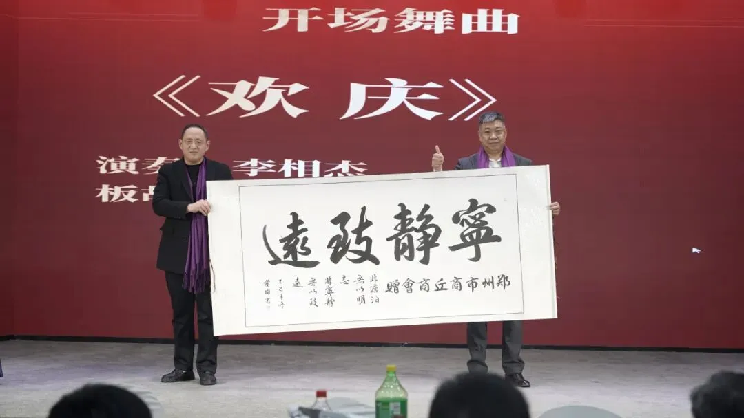 板胡演奏曲毕,郑州市襄城商会会长赵光明致欢迎辞!向在百忙之中莅临现场的各位领导、各位嘉宾表示最热烈的欢迎!向一直以来关心、支持商会发展的社会各界朋友、全体会员及家属,致以最诚挚的感谢和最美好的新年祝福!