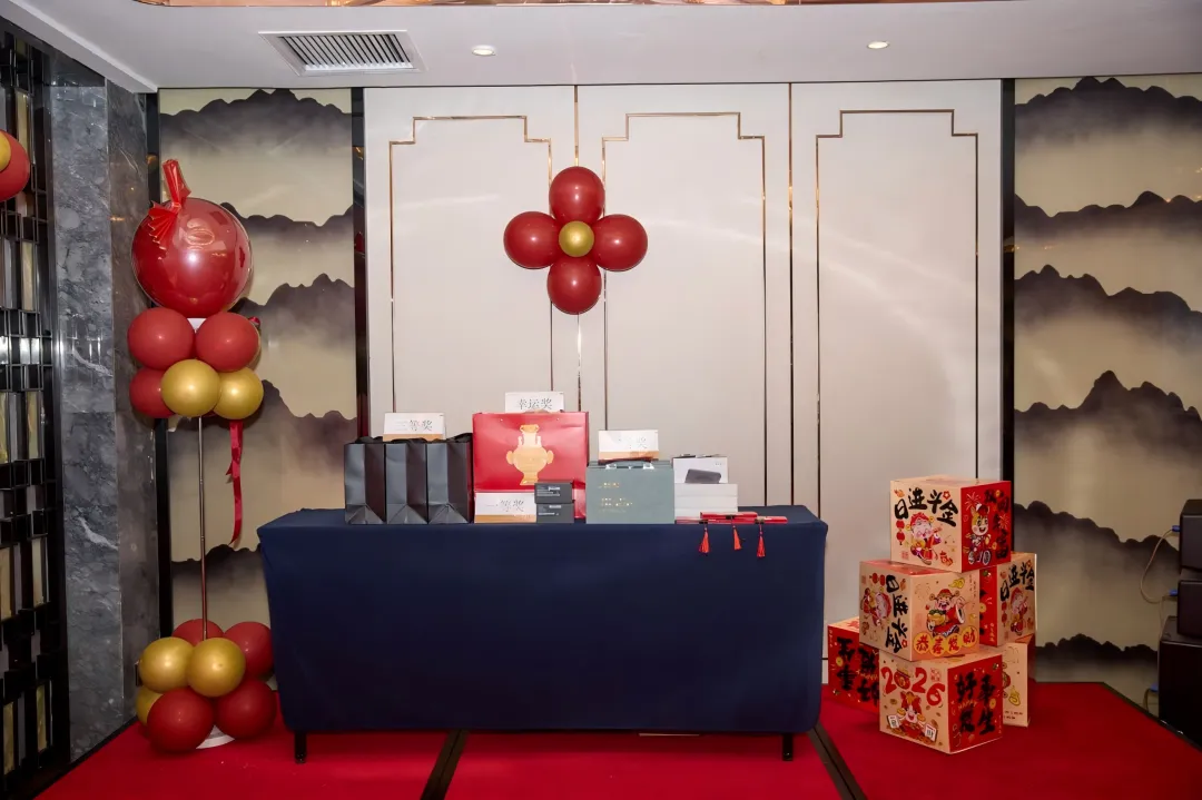 激动人心的抽奖环节将年会氛围推向顶点。本次年会设置了多轮抽奖,奖品丰厚实用:特等奖茅台新春纳福礼盒,一等奖华为手表,二等奖现金红包,三等奖纯钛保温壶。每一轮抽奖都伴随着阵阵欢呼与掌声,幸运儿们满载而归,脸上洋溢着喜悦的笑容。