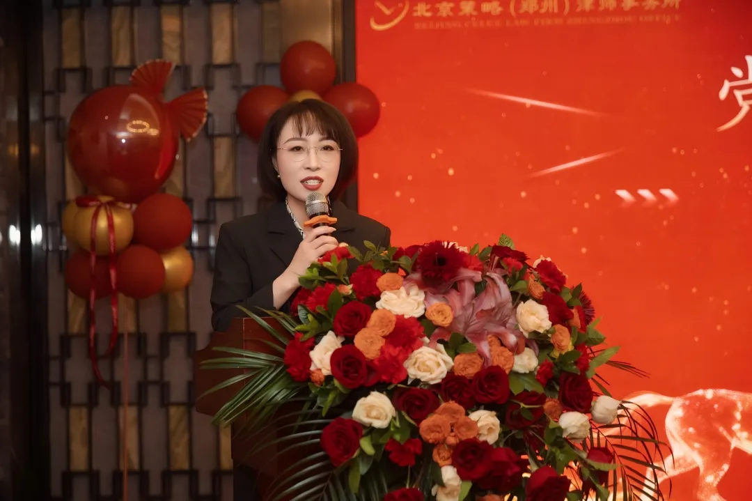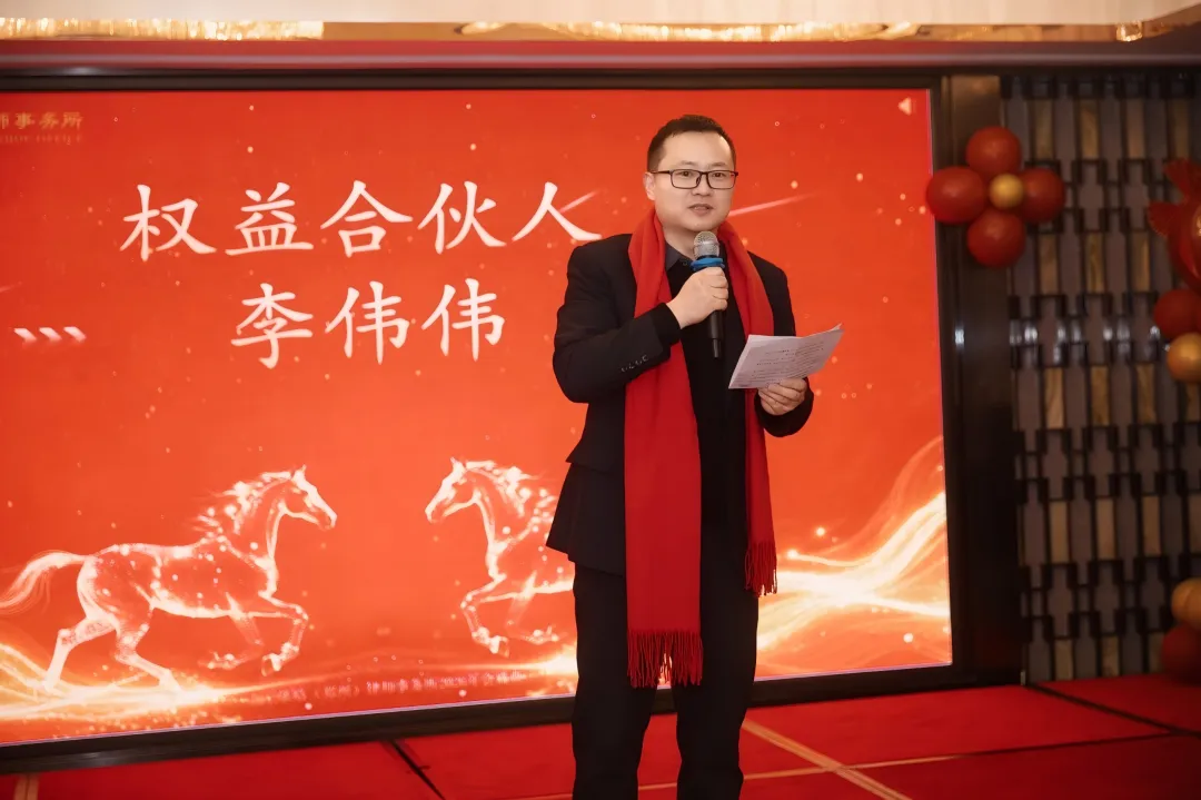 北京策略(郑州)律师事务所主任梅亚律师发表年度总结讲话。他全面复盘了 2025 年律所发展成果。面向 2026 年,梅亚主任表示,近悦远来,是对人才与客户的诚挚邀约;聚力致远,是对未来发展的坚定信念。此次 2026 新春年会,不仅是一场总结过往、表彰先进的盛会,更是一次凝聚共识、共谋发展的动员。