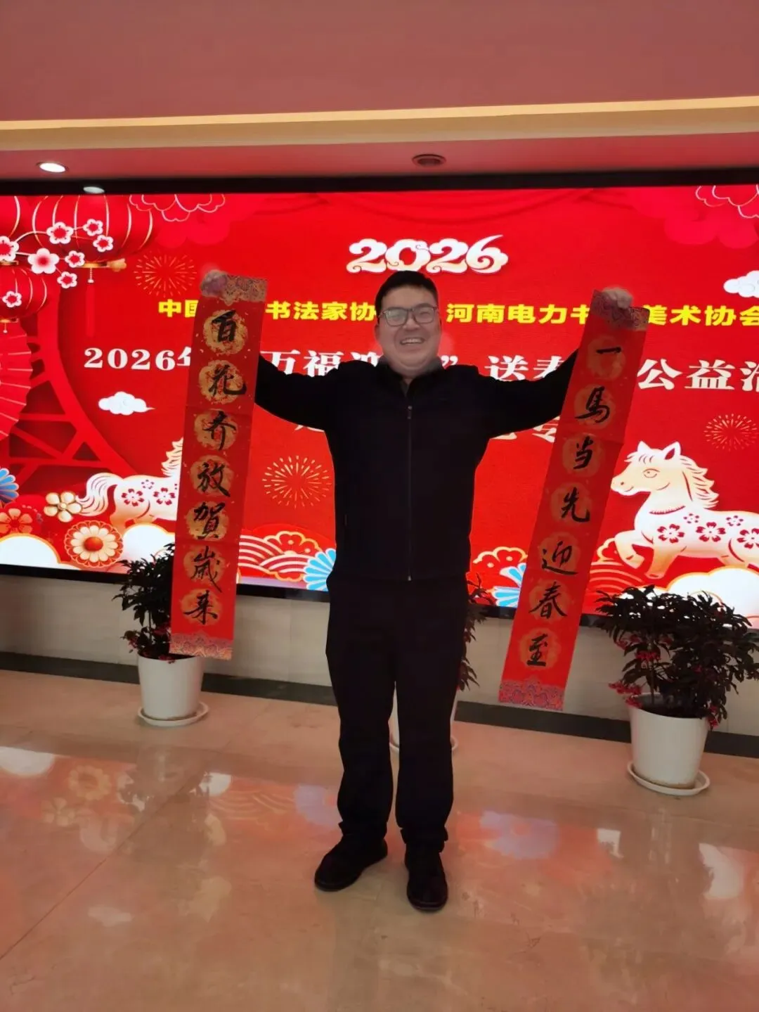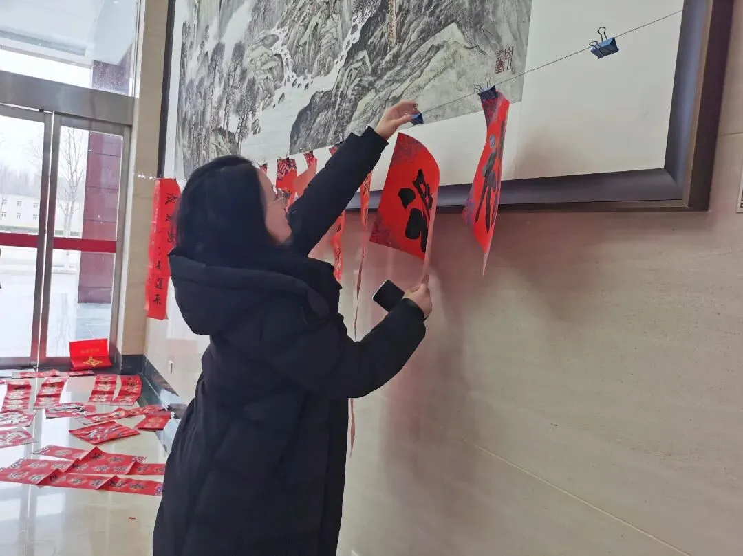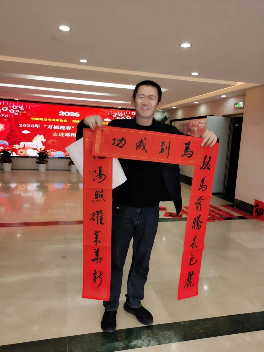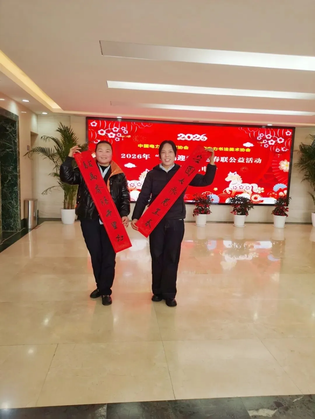在新春佳节来临之际,为营造喜庆祥和的节日氛围,2月9日,学校工会联合河南省电力书法美术协会邀请中国书法家协会、中国电力书法家协会、河南省书法家协会的8位书法家,在办公楼一楼大厅开展了“万福迎春”2026年写春联送祝福活动。活动吸引了200余名教职工热情参与,17名留校的卢旺达留学生深度体验,在红纸墨香中共同预热了中国年。