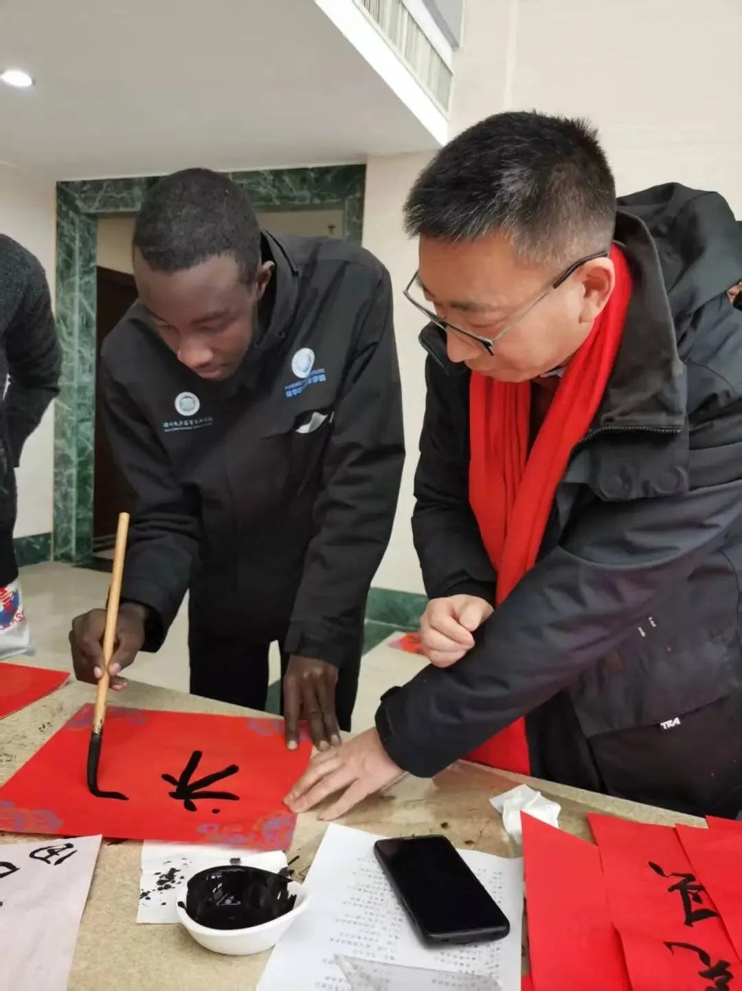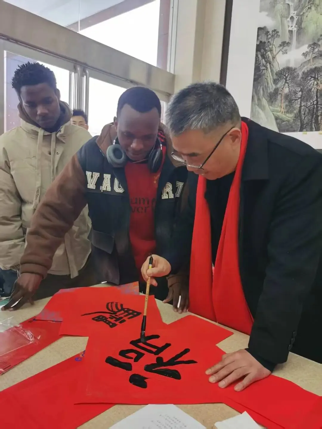 此次活动不仅以传统形式为学校教职工送上了真挚的新春祝福,营造出浓郁的年节氛围,更搭建了一个直观生动的中华优秀传统文化体验平台,通过笔墨的桥梁,让留学生们深入感知了中国春节的独特魅力,促进了文明间的交流与理解,丰富了师生文化生活,增进国际学生对中华传统文化的认知与热爱。
