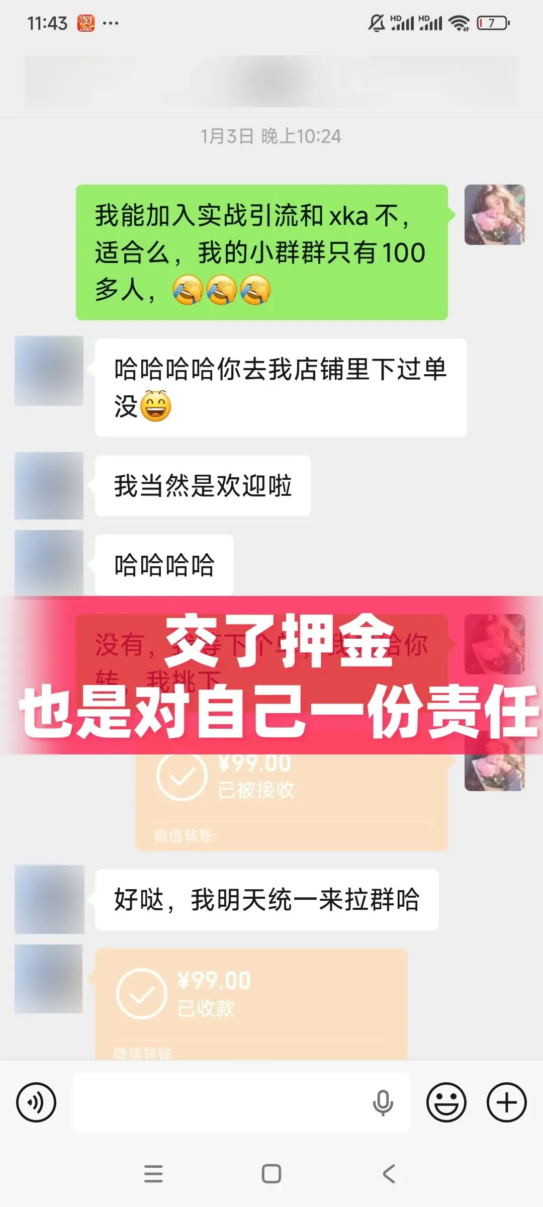 “每一次机会即使有人投喂,也要自己抓住张开嘴”,1月3日晚上10点咨询欢夏是否能加入引流课和xka?很高兴他特别欢迎我。
