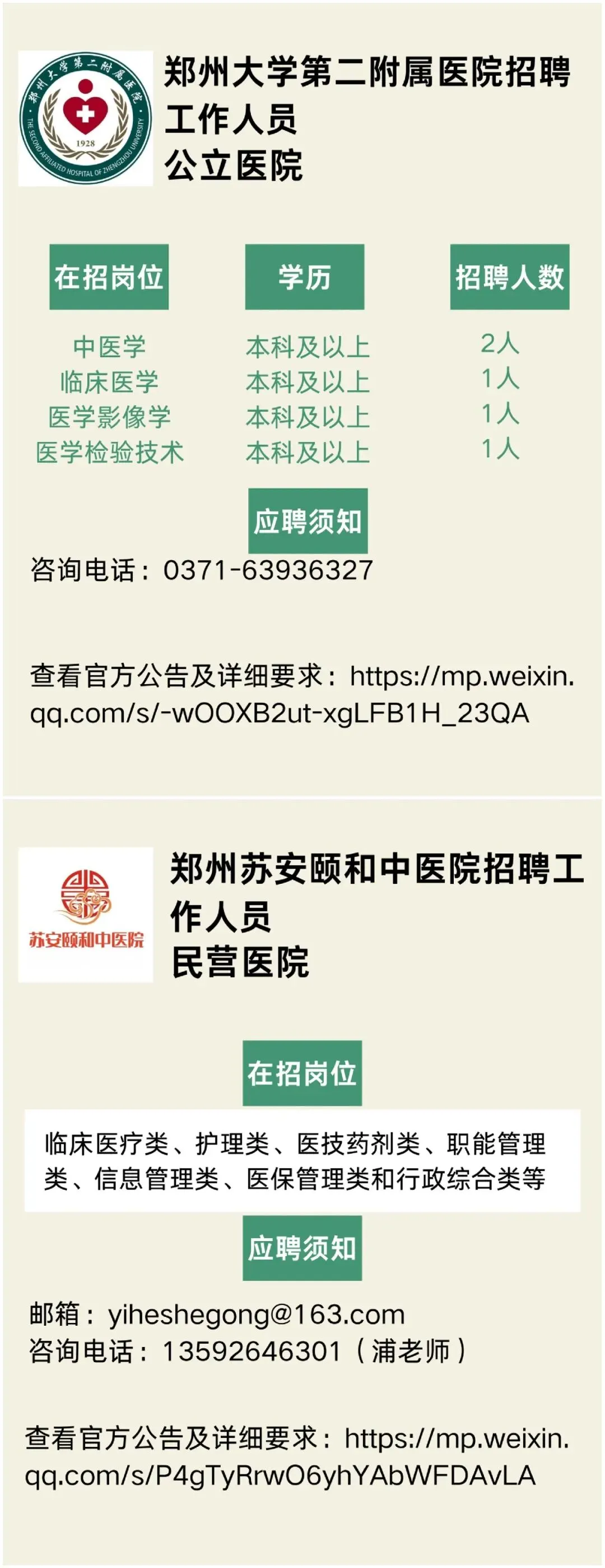 来源|郑州大学第二附属医院,郑州苏安颐和中医院。(声明:“河南省大中专毕业生就业创业促进会”微信公众号刊载此文,是出于传递更多信息之目的。若有来源标注错误或侵犯了您的合法权益,请及时与我们联系,我们将及时更正、删除或依法处理。)