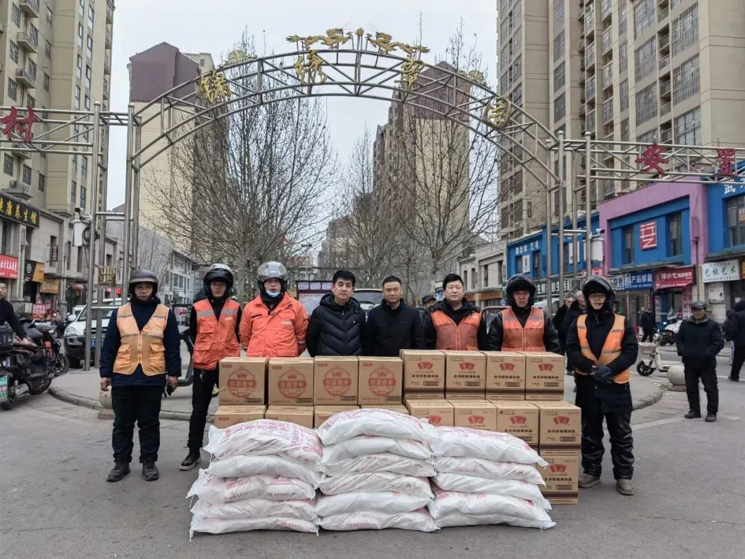 慰问过程中,慰问组一行为配送员们送上精心准备的慰问物资,叮嘱大家在忙碌配送时务必绷紧安全这根弦,严格遵守交通规则,做好防寒保暖和自身防护,合理安排作息,平安配送、快乐过年。