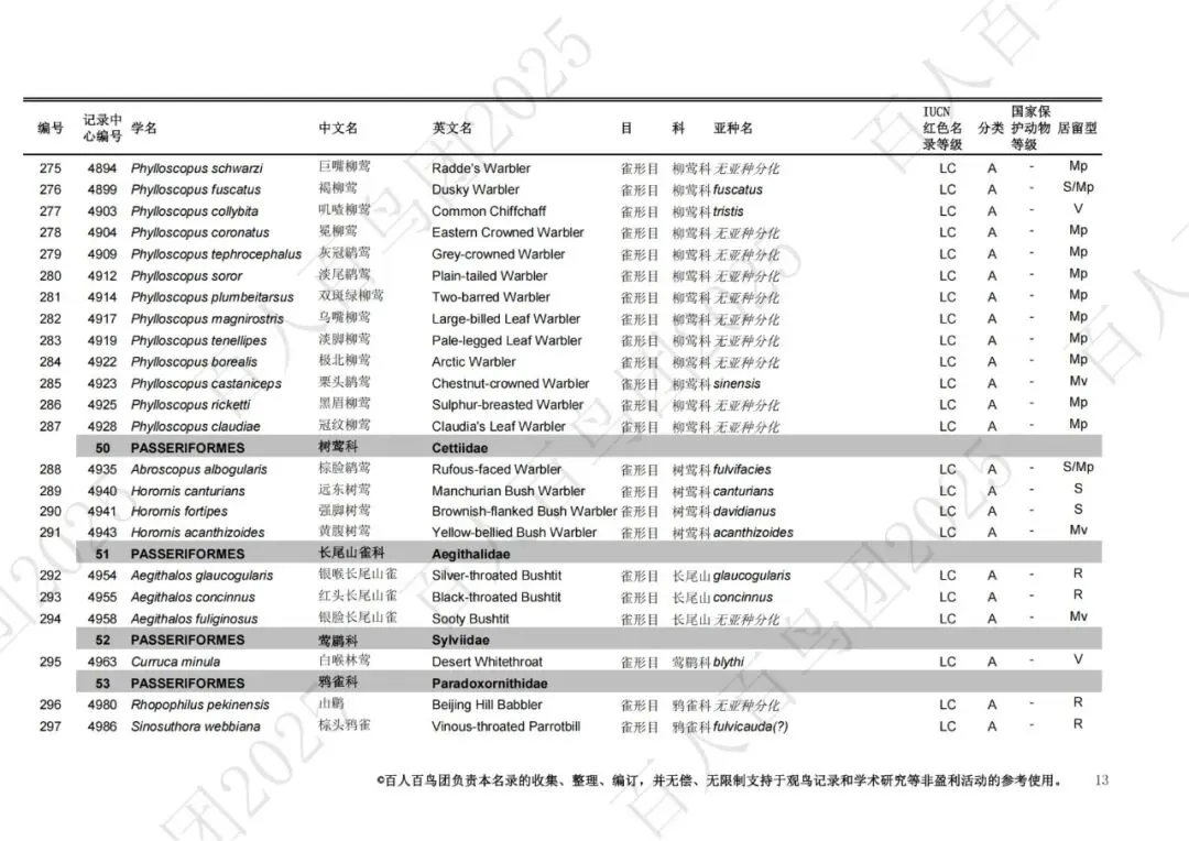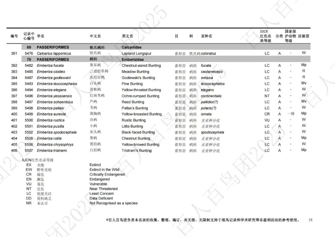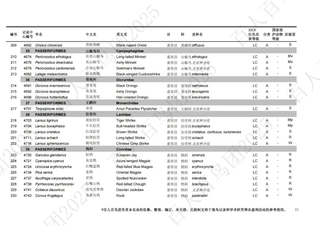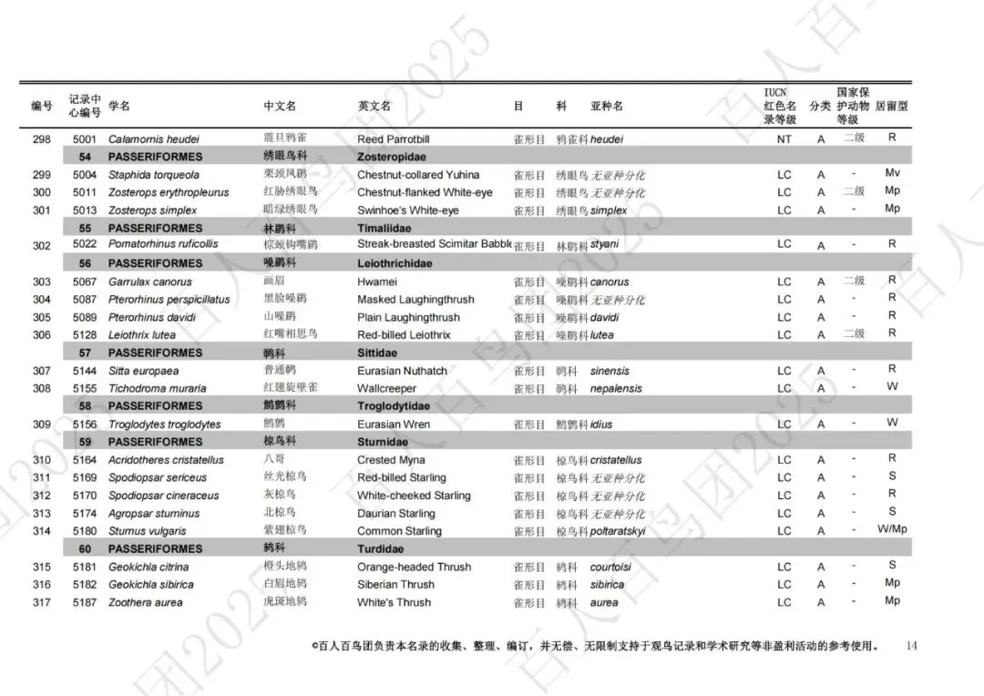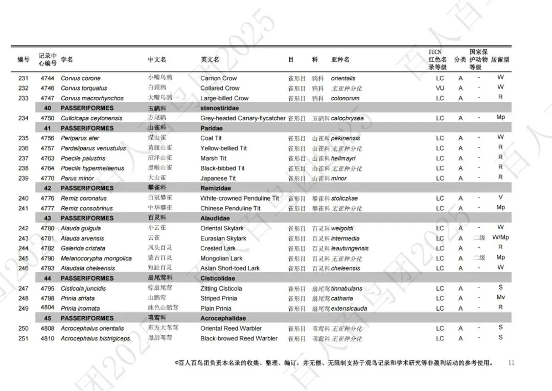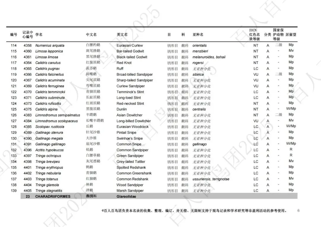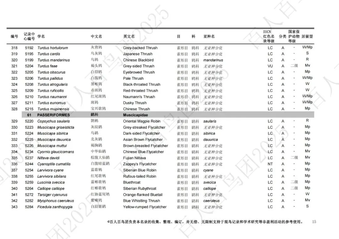 为进一步梳理鸟类分布的基本信息,促进观鸟爱好者之间的交流,使公众对郑州鸟类有更为全面的认识,并为本地区鸟类的科学研究、资源保护提供一定的科学依据和资料参考,百人百鸟团对郑州鸟类名录再次开展修订工作,此次发布的《郑州市鸟类名录2025版》(V3.0)使用的分类系统、学名(拉丁名)、中文名、英文名均主要参考《中国鸟类分类与分布名录》(第四版),部分参考IOC World Bird List (v 15.1)。