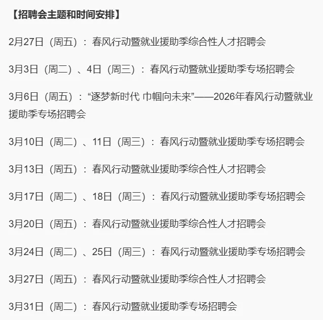 即日起到三月底,郑州市人才交流中心将举办14场春风行动暨就业援助季系列招聘活动,为求职者“送岗”。
