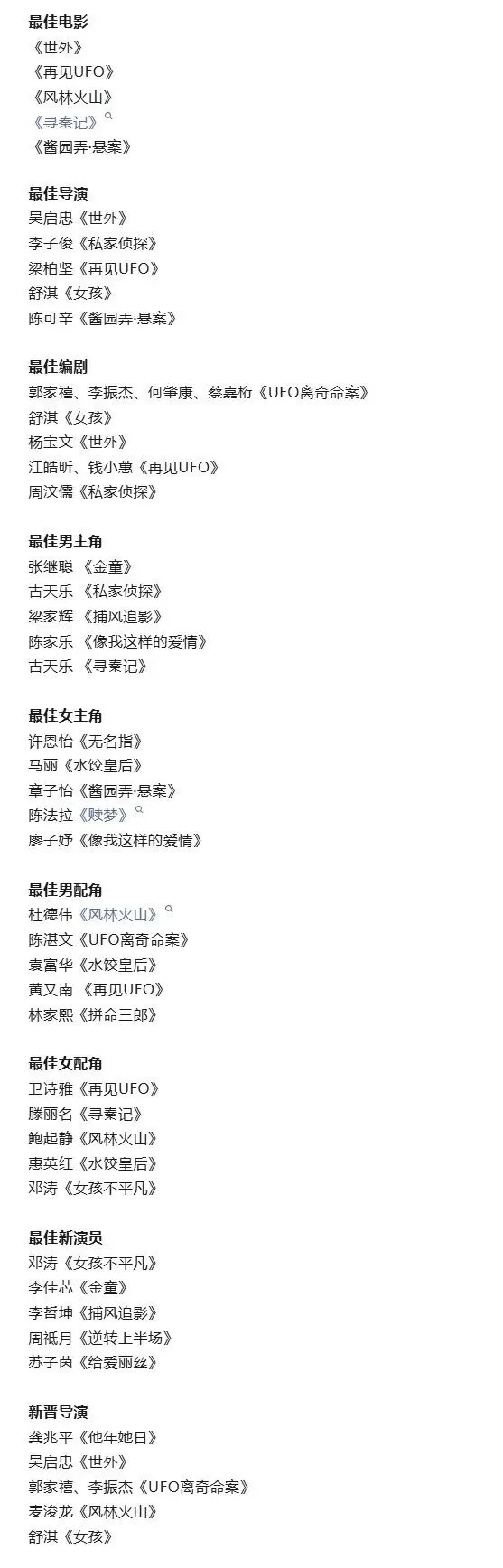 2月10日,第44届香港电影金像奖提名名单公布,完整名单如下: