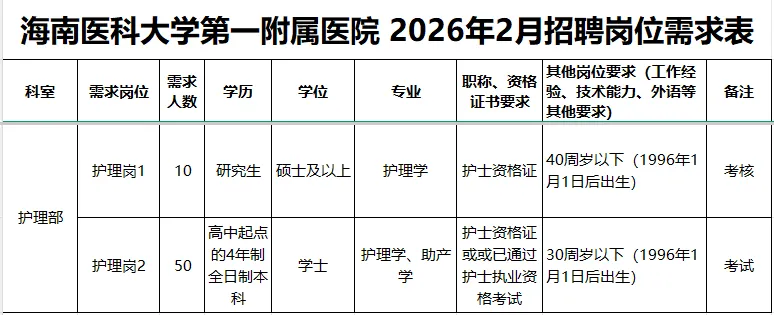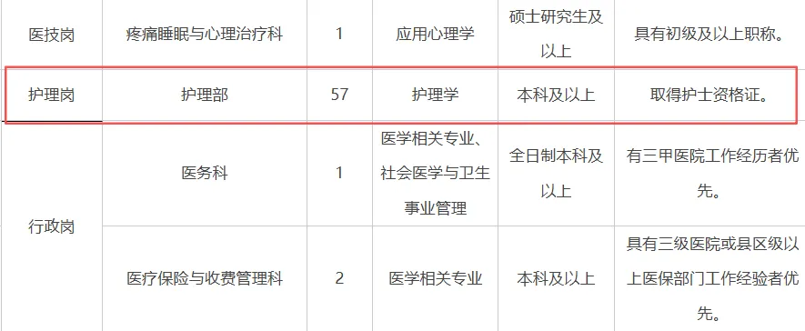 3、具有国家承认的符合岗位要求的学历,具有护士执业资格证书或护士执业资格考试成绩合格证明(需于报到前取得)。
