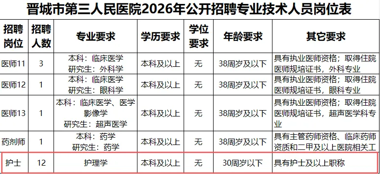 6、年龄具体要求以《晋城市第三人民医院2026年公开招聘专业技术人员岗位表》要求为准;
