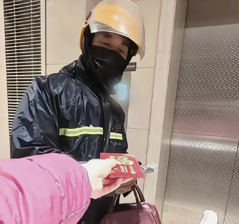 说着,女子又从口袋里掏出一个红包,笑着递给外卖小哥手上:“辛苦你了,这是我对你的一点感谢,你收下。”