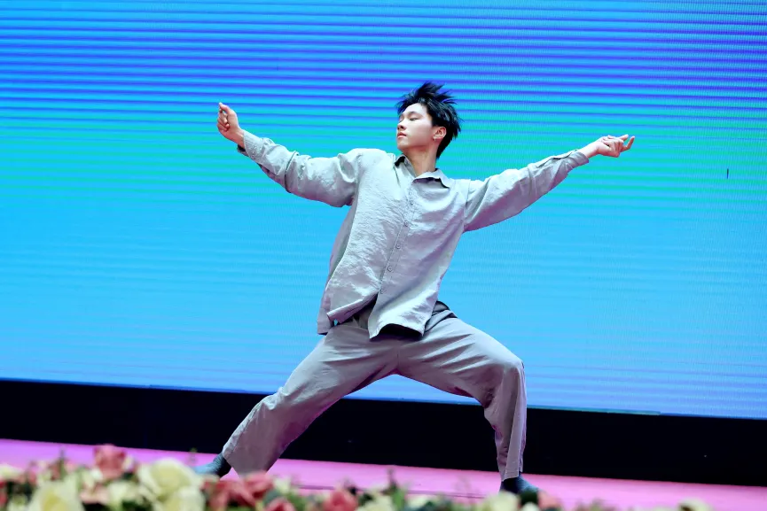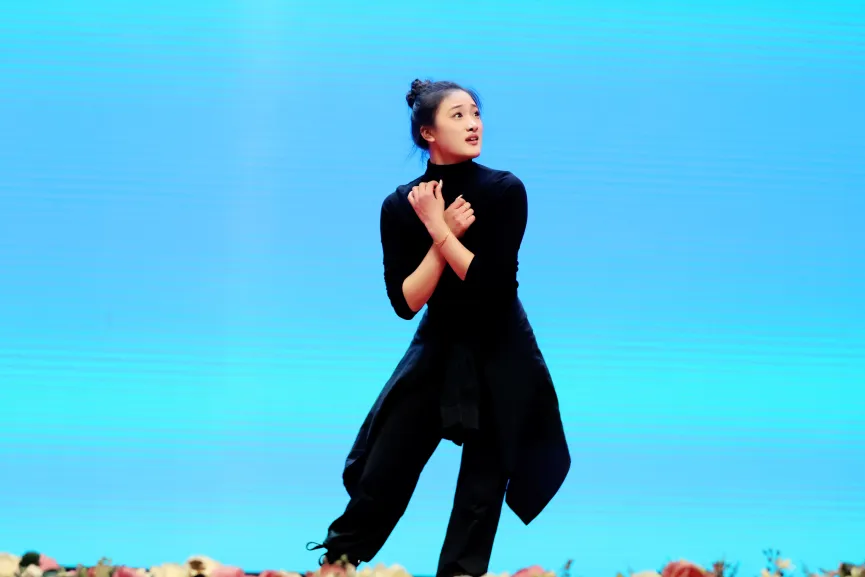 气韵生动,形神兼备。在古典舞身韵篇章中,同学们以提、沉、冲、靠、含、腆、移为核心,将身法与韵律完美融合。圆场轻盈,手眼相随,动静之间尽显中华古典舞蹈的含蓄雅致与意境之美,充分展现了我校在传统文化浸润、审美素养培育中的深耕细作,让古典艺术之美在青春舞台上熠熠生辉。