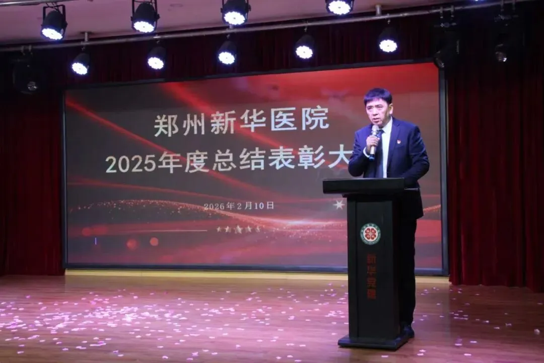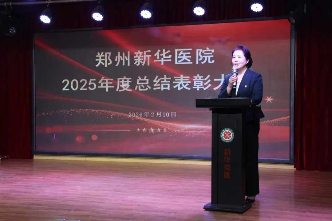 岁序更替,华章日新。2026年2月10日下午,郑州新华医院在多功能会议厅隆重召开2025年度总结表彰大会。医院领导班子与全体职工齐聚一堂,共同回顾奋斗历程,分享喜悦荣光,展望发展新篇。大会由党委副书记裴彩红主持。