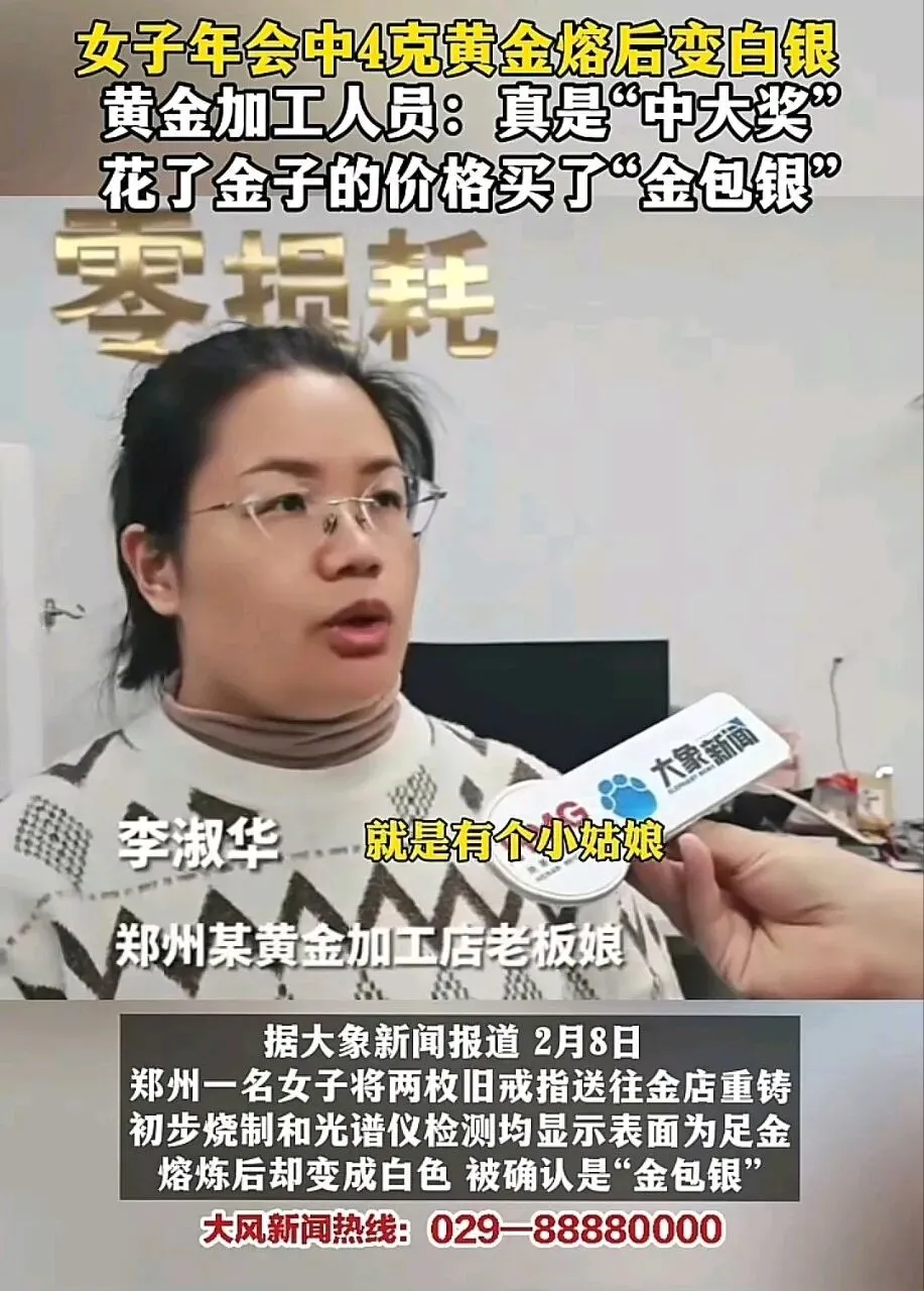 炉火升温,金属慢慢融化,颜色却不对。不是金子特有的金黄,而是逐渐发白。等完全熔化后,金店人员当场告知:这不是纯金,而是“金包银”。