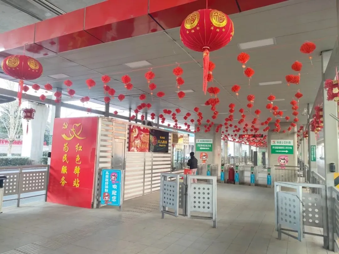 一盏盏红灯笼,不仅装点了公交站台,更悄然传递着辞旧迎新、吉祥如意的美好寓意。作为城市交通的重要枢纽,快速公交站台用细节传递温情,用喜庆点缀生活,让市民在出行途中便能感受到扑面而来的新春气息,共享城市发展的温度与节日的喜悦。
