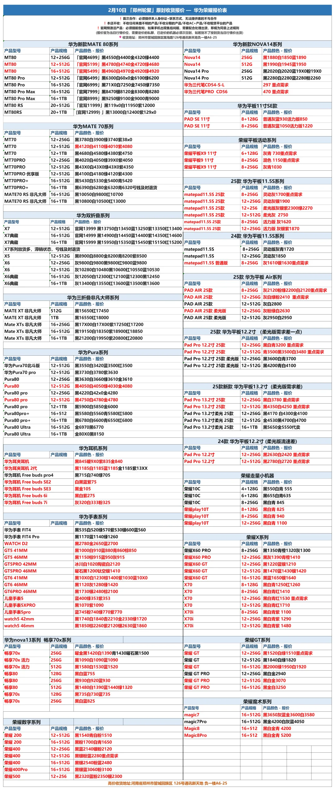 >郑州轮聚通讯 2026年2.10日数码报价更新