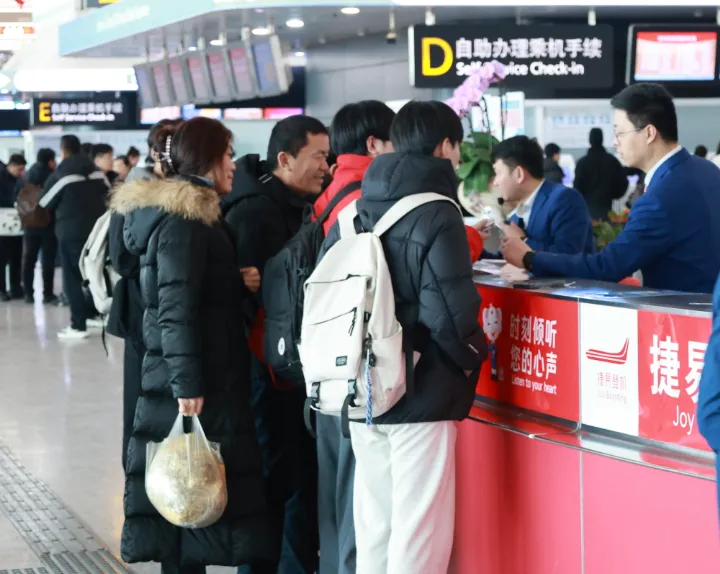 航班高位运行的同时,客流同样节节攀升。2月4日旅客吞吐量突破9.2万人次,随后三天均超9万人次,最高一天达到9.5万人次,回家与出游的热情全面释放。