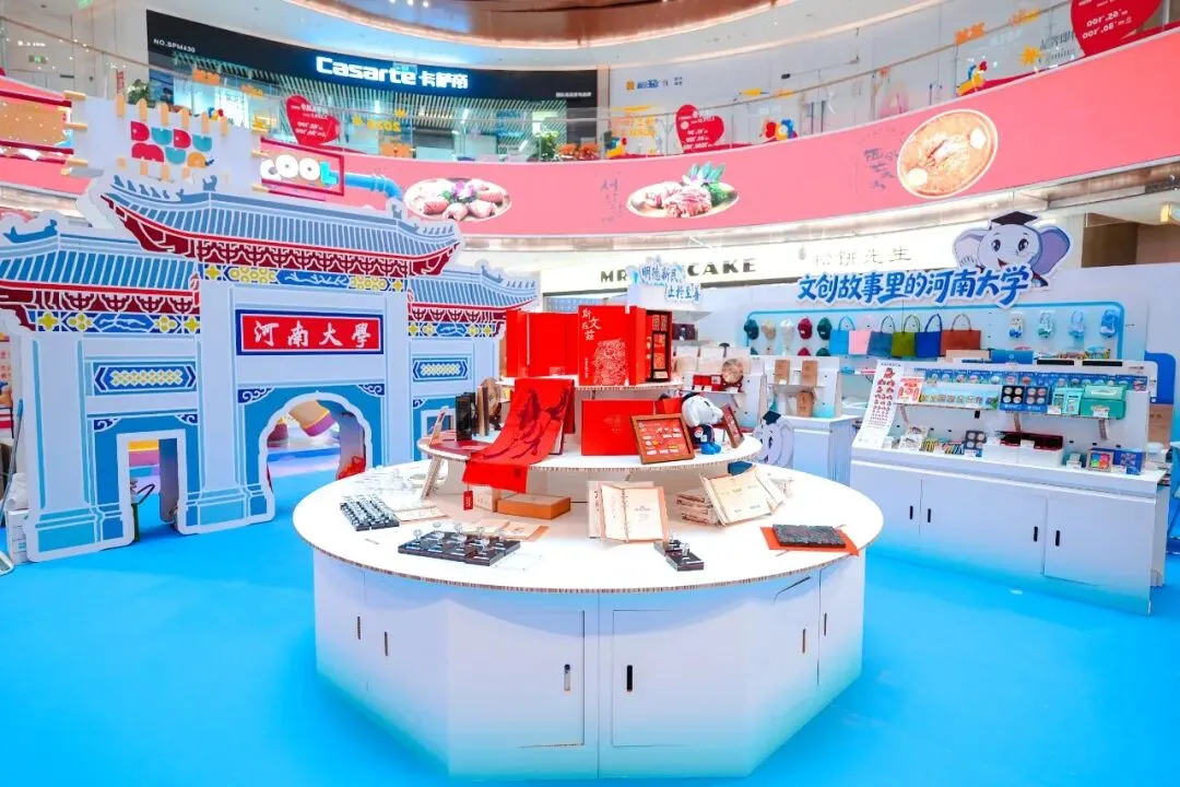 为深入落实河南省文化旅游业高质量发展工作部署,推动高校文创走出校园、融入城市消费场景,丰富新春文旅供给,2026年2月8日至2月27日,河南大学·百年风华度新春文创快闪展在郑州新田360广场(绿地店)正式启幕。本次活动由河南大学出版社主办,新田360广场(绿地店)、河南大学文化产业基地有限公司承办(河南大学文创中心)承办,以100平方米沉浸式体验空间,打造“百年文脉+非遗年味+青春互动”的文创新场景,让河大底蕴与中原文化走进市民生活、点亮新春佳节。