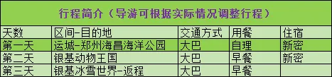 D2:早餐后集合出发前往【银基动物王国】银基动物王国是由银基国际旅游度假区斥巨资打造的、具备国际水准的动物主题乐园。集动物观赏、科普教育、动物展演、游乐设备、剧场表演、5D影院等众多娱乐元素于一体,是一所拥有互动特色的动物主题综合性乐园。特色演绎:1.百老汇剧场:这里是动物狂欢的精彩大世界,草食动物结队出行、百鸟放飞,各种动物与大自然结合 2.萌宠剧场:看萌宠们的卖萌大作,体验与萌宠零距离亲密互动,新奇趣怪的萌宠大聚会。 3.生命之树演出:以生命之树树干为屏幕,配合激光、音乐、喷泉、烟火等特效,缔造视听冲击力满分的感官大秀,将银基动物王国的美好与绚烂在这一刻集中展现。(生命之树演出持续升级中,部分特效试营业期未展现) 4.《奇境森林》灯光投影秀:在银基动物王国中央,一座恍如“天空之城”的奇幻花园岛屿坐落于此。花园中心一颗高45米、直径26米,无限蔓延向天际的参天巨树挺拔而立。巨大的树根蜿蜒盘踞在宽广的土地上,雕刻着栩栩如生的动物模型,灵兽们英姿挺拔,守护着它们的王国。当夜幕降临,“生命之树”被光明之星点亮,大自然世界中的动物们被一一召唤,巨树变成5D的天然银幕,展开一场绮丽梦幻的灯光投影秀,上演起一场神秘动物王国大片。白天,与花草植物融为一体的大树,在群兽雕塑的守卫下,如同一座无法撼动的王国庄严大门,而此时被光影点亮,动物们逐一复活,开启一场快乐的丛林狂欢。《奇境森林》灯光投影秀演出由序幕·《森林的托付》,第一幕·《神树复苏》,第二幕·《神秘海洋》,第三幕·《遨游天际》,第四幕·《狂野之森》,尾声·《生灵齐聚》六大篇章组成。一系列丰富的故事线将观众代入炫彩魔幻的视觉旋涡。抵达景区后自行参观游览,游玩结束后,乘车入住酒店。用餐:早 住宿:市区快捷酒店