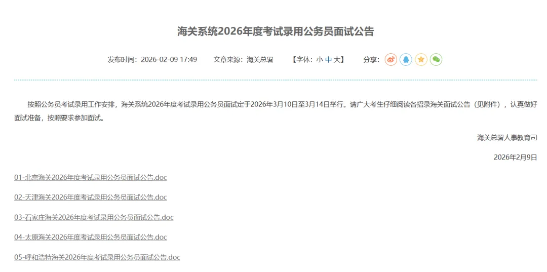 根据公务员法和公务员录用有关规定,现就2026年度郑州海关录用公务员面试有关事宜通知如下: