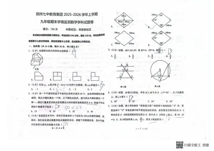 郑州七中九年级数学期末试卷