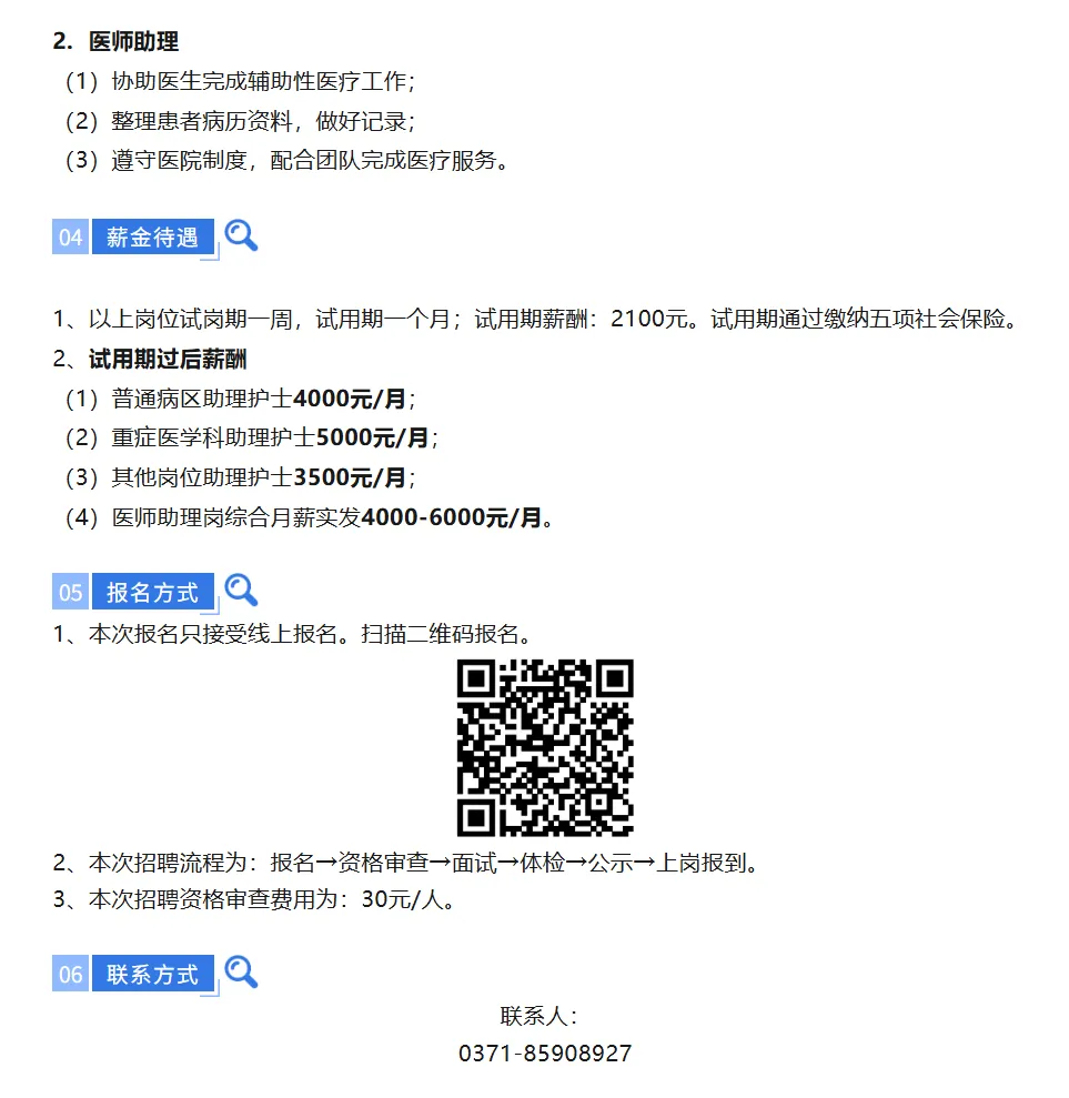 >郑州某三甲医院招聘!助理护士、医师助理 专科可报!岗位有限!近期面试!