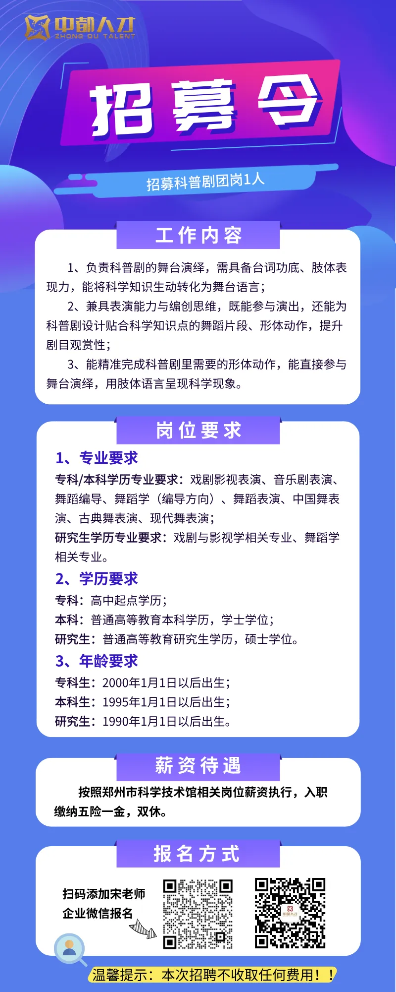 >郑州科技馆科普剧团岗招人啦