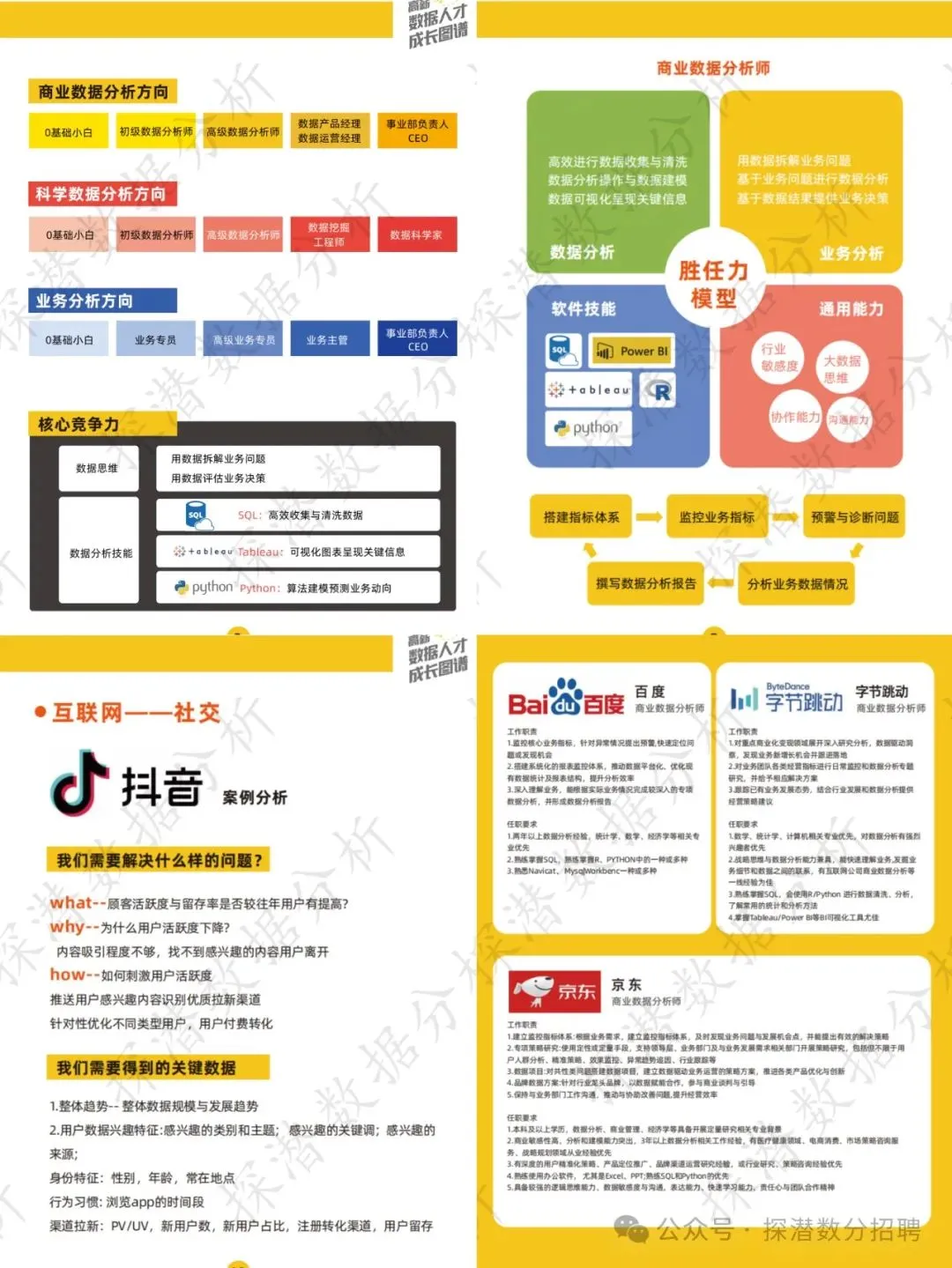 业务方向:数据分析师、商业分析师、产品经理、业务数据分析师、财务分析、市场营销、咨询顾问、增长运营、经营分析、人力资源、数据产品经理、产品运营经理、项目经理、数据运营等