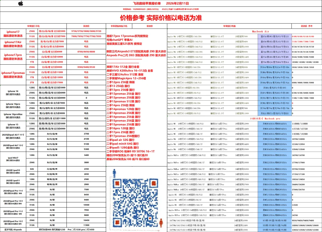 2026年2月11日渠道报价单 关注公众号查看每日报价