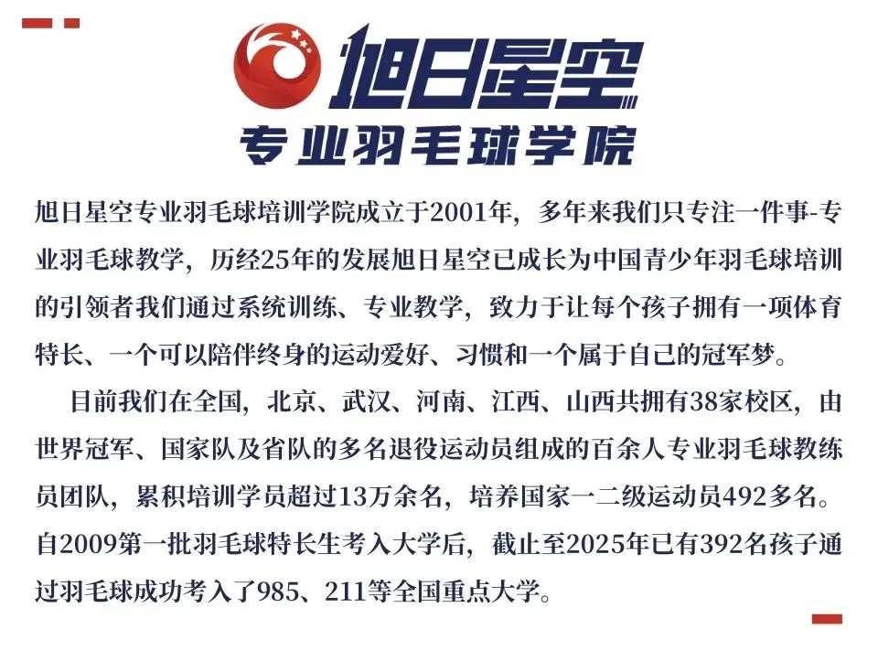 在刚刚结束的2024年北京市青少年羽毛球锦标赛中,旭日星空学员代表各区体校参加锦标赛的运动员,其中56人次获得申报国家一级、二级运动员资格。