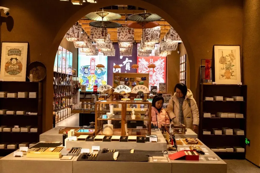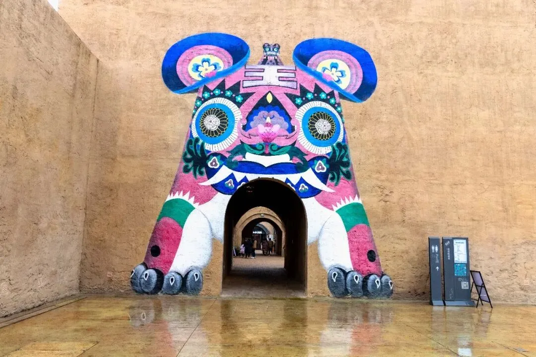 中间地坑院里有很多非遗文创产品,包括省博里的镇馆之宝、剪纸扎纸艺术、民间民俗产品等等。其实地坑院本身就属于河南非遗民居,加上各个角落那些精美的文艺造型,四处走走看看,打个卡拍个照也是一件趣事。