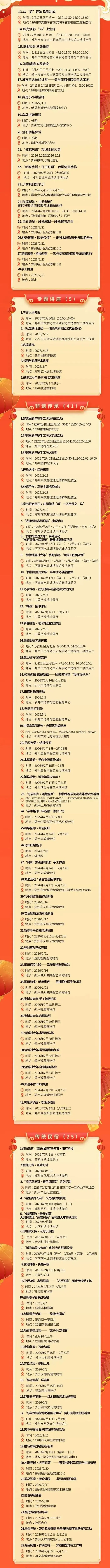 2026 马年春节,别发愁!小夏老师特意给大家挖来了官方专属遛娃好消息,郑州市文博系统重磅推出233 项精彩活动,不用费心做攻略,每天换着花样带娃玩。不用奔波劳累,不用花钱扎堆,让娃在玩乐中感受传统文化的底蕴,在互动中增长见识。
