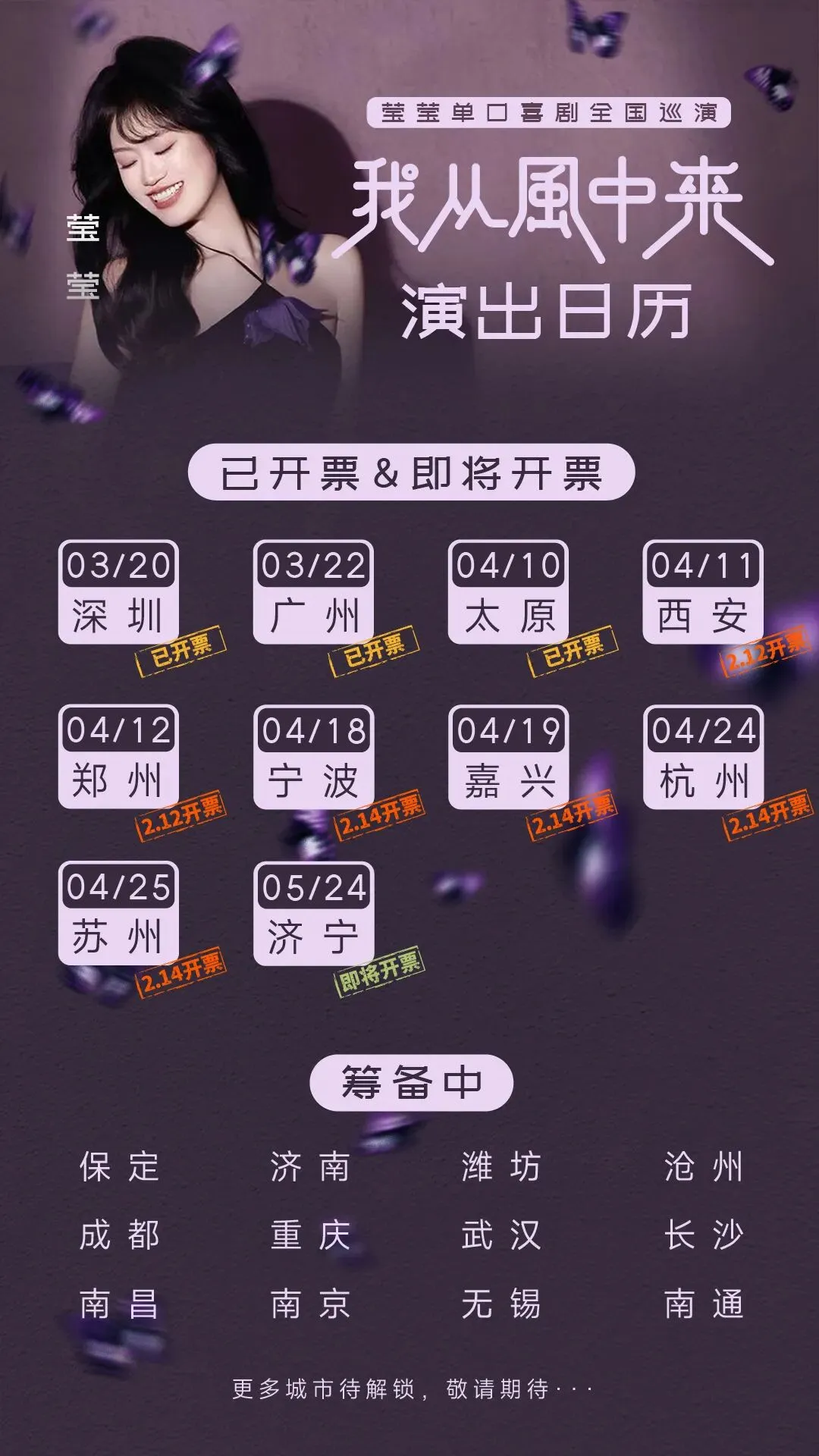 >莹莹《我从风中来》「西安」&「郑州」开票~