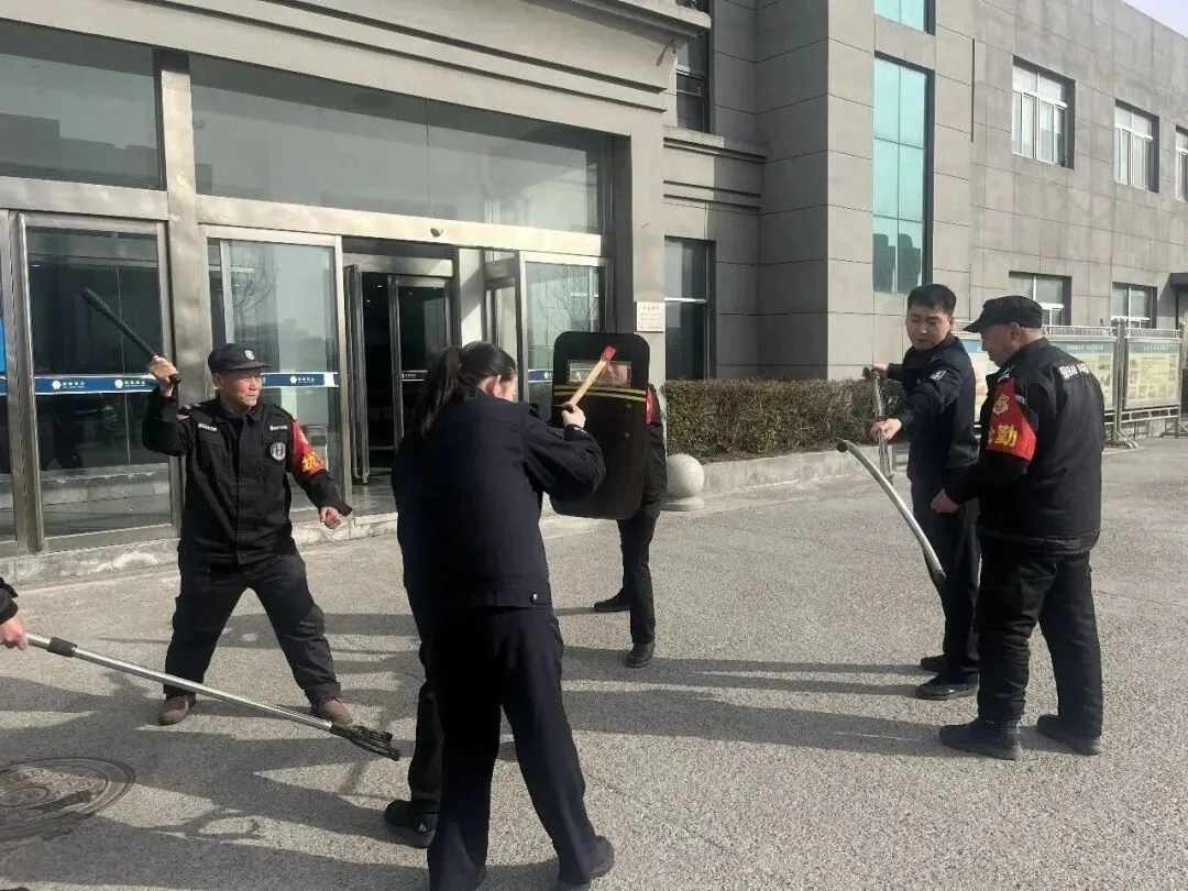 宣讲结束后,现场转入实战演练环节。民警现场示范灭火器“提、拔、握、压”操作要领,讲解不同火情应对方法与疏散逃生技能,组织职工分组实操灭火器材;同步开展反恐防暴演练,详细讲解防爆盾牌、钢叉等装备使用方法与应急处置流程,指导参训人员规范操作、协同配合,有效提升应急处置能力。