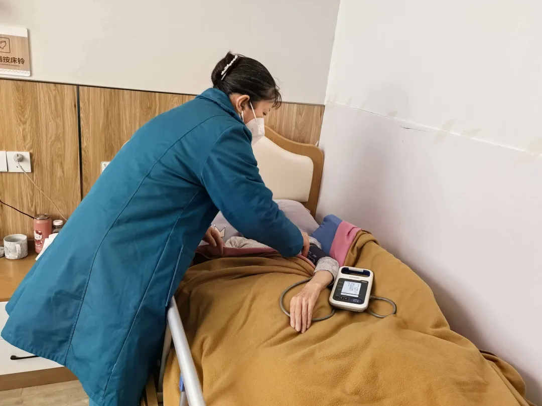 走访过程中,马靖与刘兰芳、刘秋月医生怀着诚挚的心意,与养老中心的老人们亲切交谈,详细询问老人们的饮食起居、身体状况和实际需求,为老人们送上小年的美好祝福,叮嘱他们注意冬日保暖、规律作息,安心欢度佳节。随后,家庭医生团队有序开展健康巡视服务,为老人逐一进行心肺听诊、血压血糖测量、SpO₂(血氧饱和度)检测,细致记录每一位老人的健康数据,全面掌握他们的身体状况。
