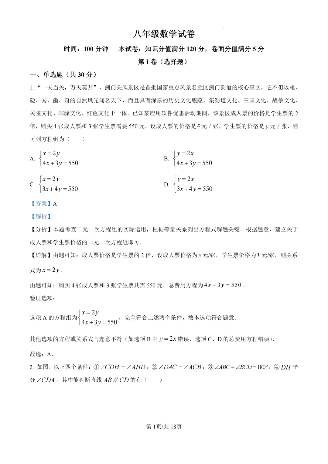 本卷紧扣八年级数学课标,全面考查一次函数、数据分析、几何证明等核心内容。基础题如方程组应用(第1题)和统计概念(第3、7题)属易得分点;难点集中在函数图像分析(第8-9题需数形结合)和综合实践(第23题涉及数据分析),其中第23题树叶分类对学生的数据处理与统计推理能力要求较高,体现数学核心素养的深度培养。<点击图片查看全卷>
