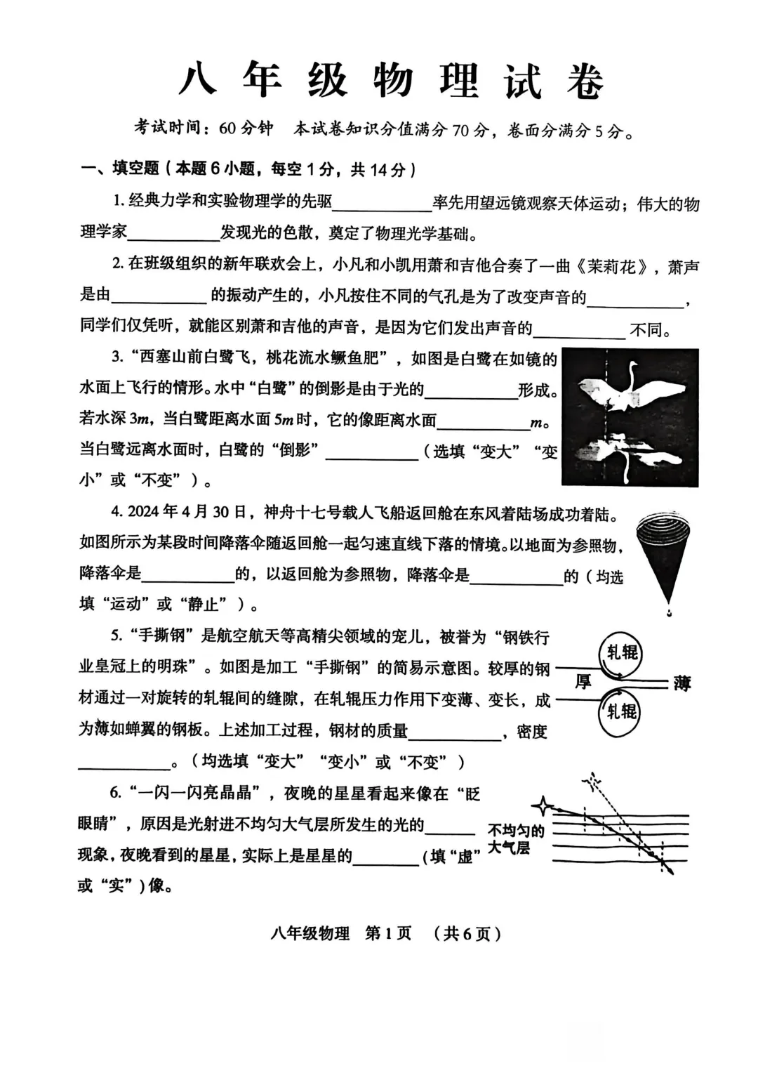本卷紧扣八年级物理课标,全面考查光现象、声现象、物质测量等核心内容。基础题如概念判断(第7-9题)和简单计算(第1-3题)属易得分点;难点集中在实验探究(第17-19题需操作分析)和综合应用(第20-21题涉及多知识点),其中第21题眼镜材料分析对学生的数据处理与生活应用能力要求较高,体现物理核心素养的深度培养。<点击图片查看全卷>