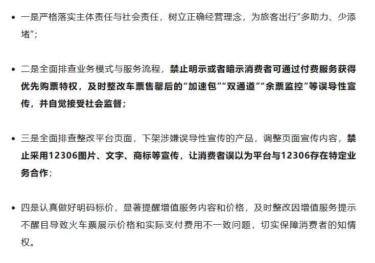 近日,北京市市场监督管理局约谈携程、去哪儿、飞猪、同程、美团、京东、航旅纵横、高铁管家、滴滴、高德地图、百度地图、腾讯地图等12家涉及火车票网络销售的平台,禁止引导付费优先购票,并要求及时整改“加速包”等误导性宣传。