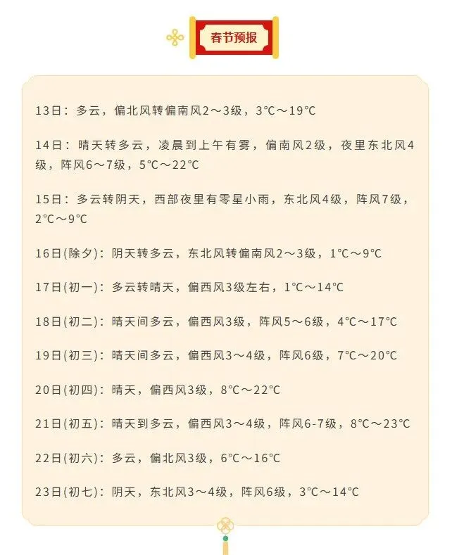 最高气温23℃!春节假期郑州天气预报出炉