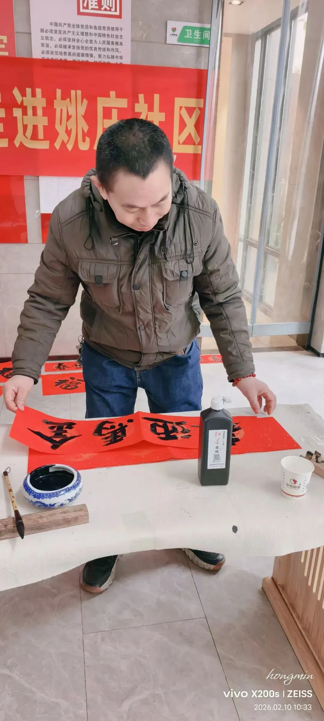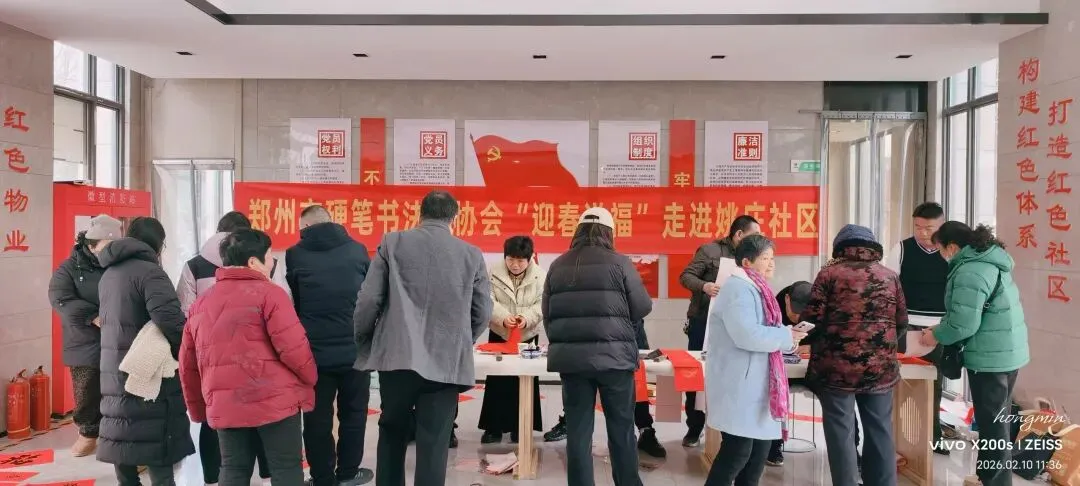 新春将至,年味渐浓。为弘扬中华优秀传统文化,丰富社区居民精神文化生活,营造喜庆祥和的节日氛围,2026年2月10日上午,由郑州市硬笔书法家协会与姚庄社区村委会联合主办的“迎春送福”文化惠民活动,在姚庄社区顺利开展。