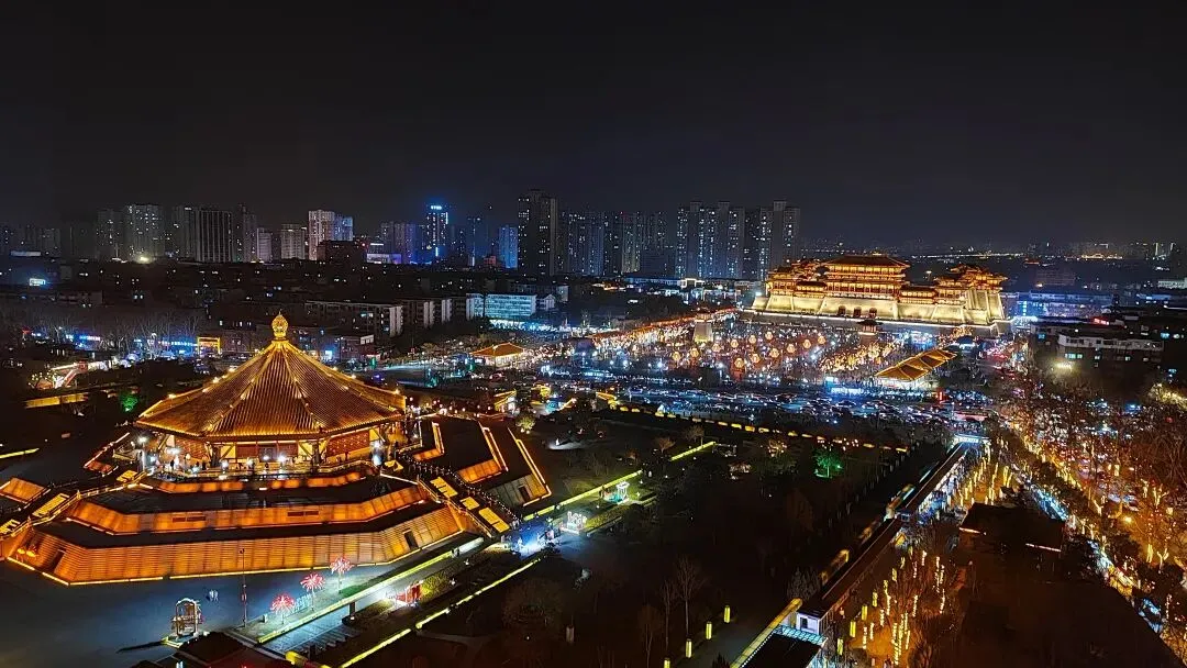 九洲池遗址,简单理解为隋唐时期的御花园,主要是看灯展。