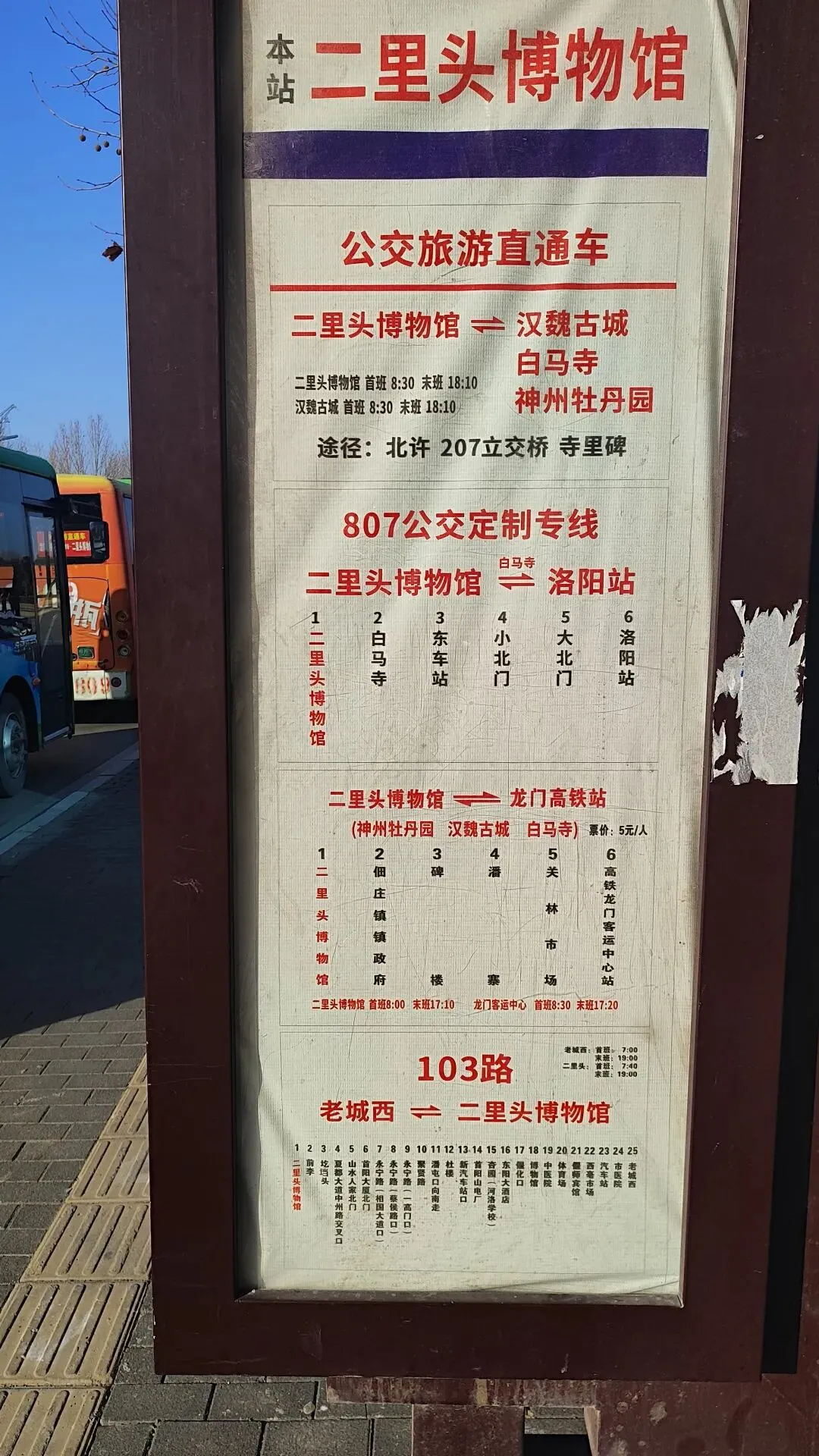 二里头遗址博物馆,在洛阳汽车站公交车🚌停车场大门口附近乘坐807旅行直通车直达。博物馆介绍夏朝历史为主。博物馆附近有历史遗址可以游览。二里头博物馆理应有班车(图9)到汉魏洛阳城遗址博物馆,我这次没有碰到。二里头博物馆有到洛阳龙门高铁站的直通车。